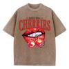 Повседневные женские футболки с кислотной стиркой, футболки с принтом «Вишни на губах», состаренные, оверсайз, с коротким рукавом, трендовая женская одежда
