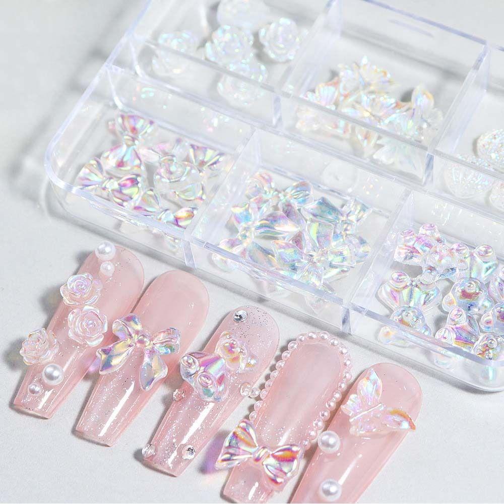 Resin Nail Charms Flower Nail Accessories Manicure Ornaments Bear Nail Rhinestones Manicurist
