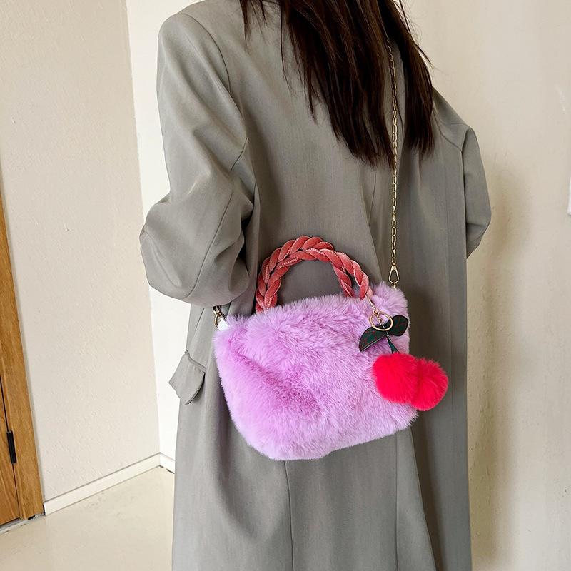 Однотонная плюшевая вишневая квадратная сумка женская универсальная модная сумка-мессенджер через плечо с цепочкой зимняя маленькая сумка-тоут