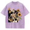 Летняя женская футболка Y2KЖенская одежда Распродажа Оверсайз Принт черепа и подсолнуха Свободный вываренный топ Тренд Короткий рукав