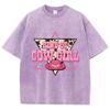 Женская хлопковая футболка с принтом «Ковбойка», розовая, с принтом шляпы, с круглым вырезом, оверсайз, с кислотной стиркой, летний топ