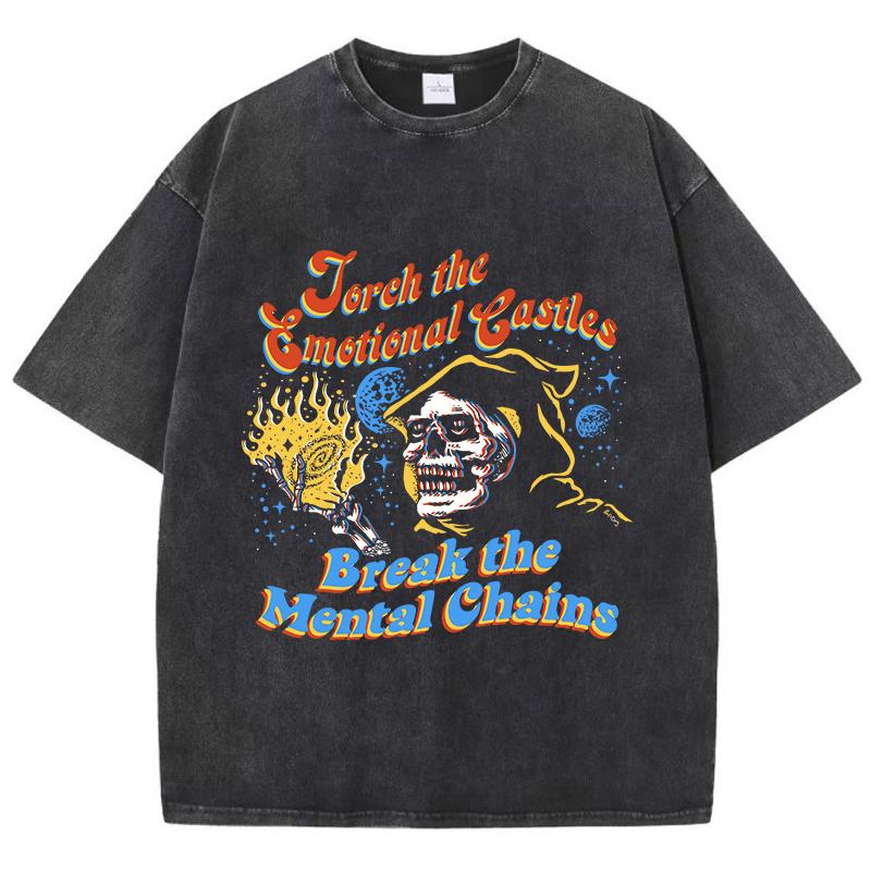 Уличные женские футболки с вареным эффектом, футболки с винтажным принтом скелета ведьмы, удобные хлопковые футболки оверсайз, летняя одежда