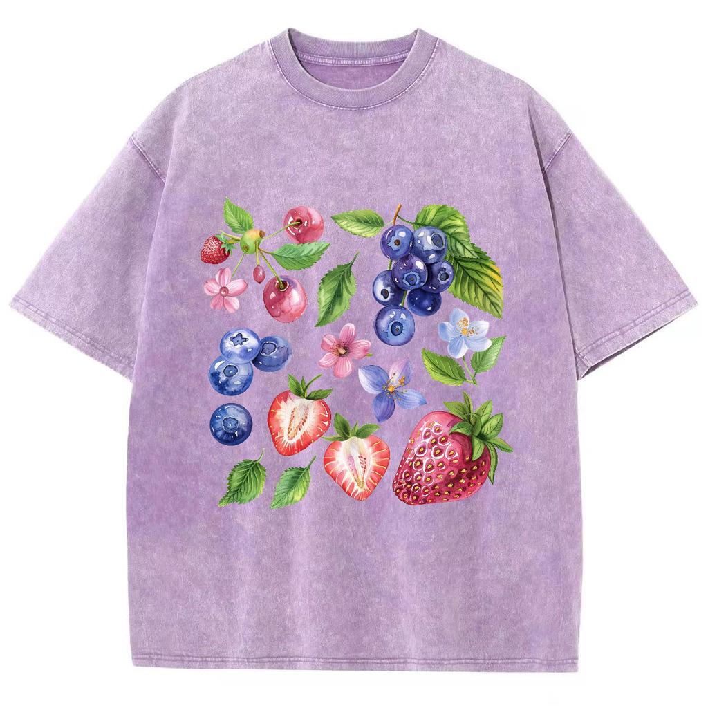 Летняя женская футболка Y2K Распродажа женской одежды 2024 года с принтом фруктов и выцветанием Топ Harajuku с коротким рукавом
