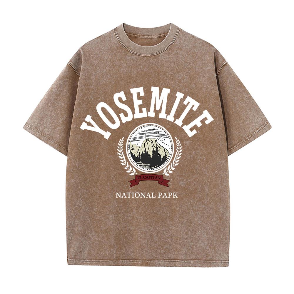 Женские хлопковые выстиранные футболки модного дизайна с принтами Национального парка Йосемити, с коротким рукавом, состаренные, с круглым вырезом