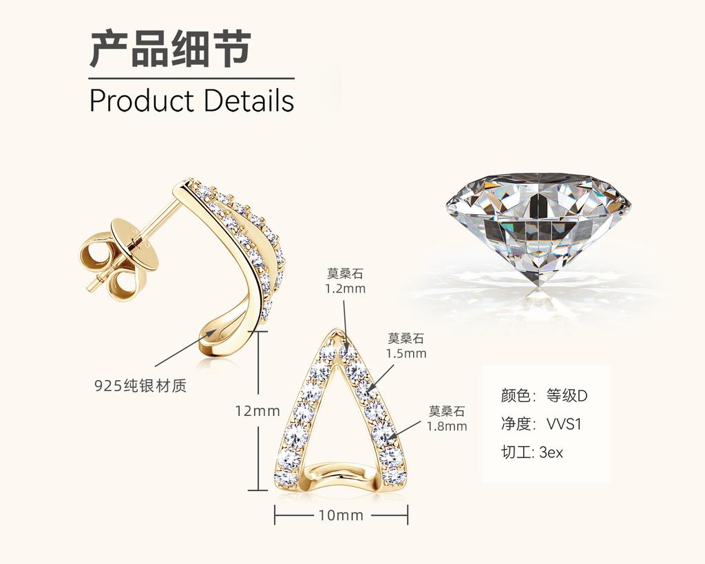 Silvere Модные и универсальные серьги-пусеты с трехмерными муассанитами в форме сердца, серебряный аксессуар для ушей 925 пробы для девушек