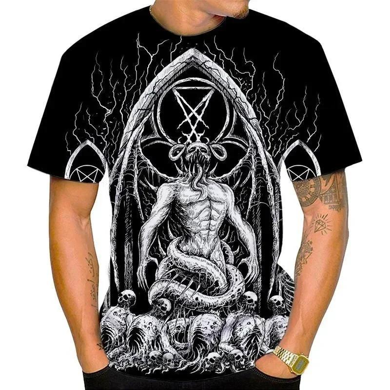 Летняя футболка с 3D принтом Дьявола Сатаны, мужская футболка с коротким рукавом, модный Харадзюку, хип-хоп, повседневная, унисекс, уличная одежда