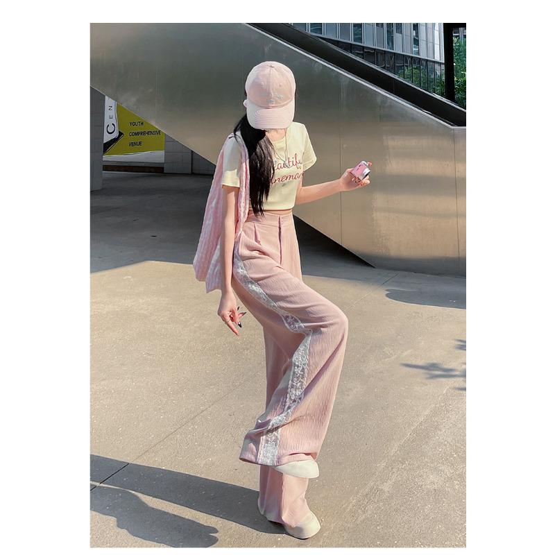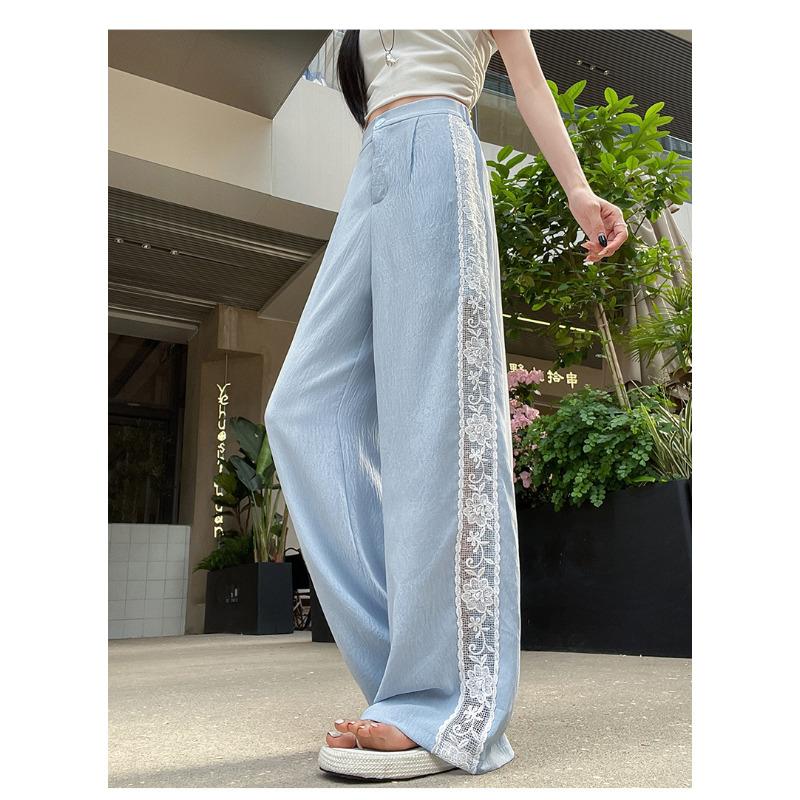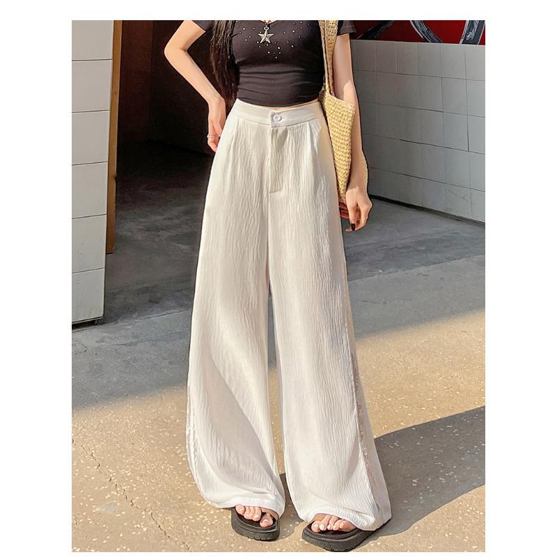 Женские летние широкие брюки с разрезами, с высокой посадкой, тонкие, быстросохнущие, повседневные костюмные брюки