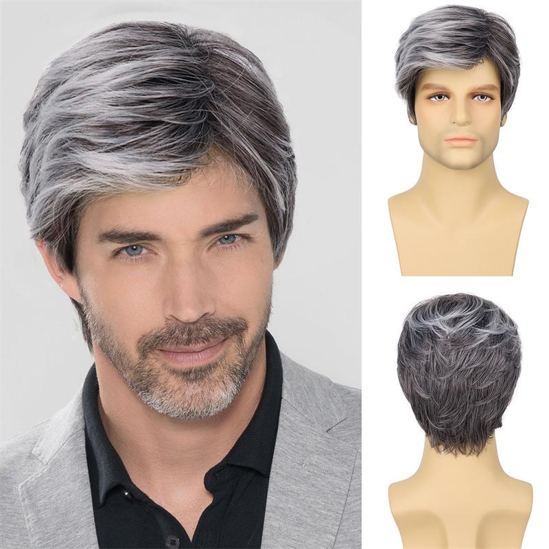 Синтетический мужской парик Замена волос Натуральный парик с челкой Белый Костюм Гудмана Вечеринка на Хэллоуин Бизнесмен