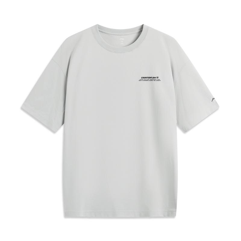 Li Ning CF Однотонная футболка с надписью, круглым вырезом, ледяная на ощупь, удобная, антибактериальная, с коротким рукавом, мужская футболка, кирпично-серая ATSV189-5