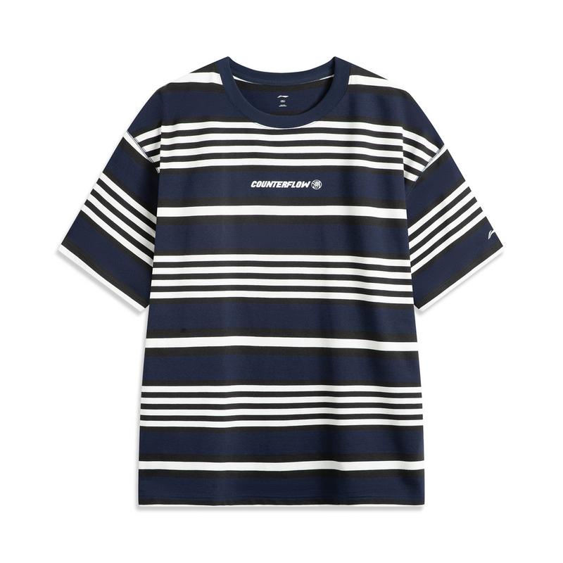 Li Ning CF Полосатая Удобная Контроль Температуры Антибактериальная Футболка с Коротким Рукавом Мужские Топы Глубокий Ирис Синий ATSV181-2 — купить товар онлайн с бесплатной доставкой по всему миру!