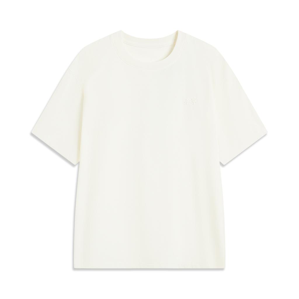 Li Ning Серия цветов Китая Повседневная Минималистичная Однотонная Футболка с коротким рукавом и круглым вырезом Мужские футболки Молочно-белый AHSV145-1
