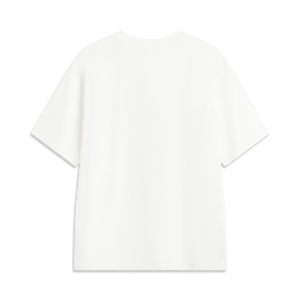 Li Ning Серия Спортивный Стиль Жизни Повседневная Простая Однотонная Футболка с Круглым Вырезом, Свободная, Пуловер, с Коротким Рукавом, Унисекс, Молочно-белый AHSV167-9