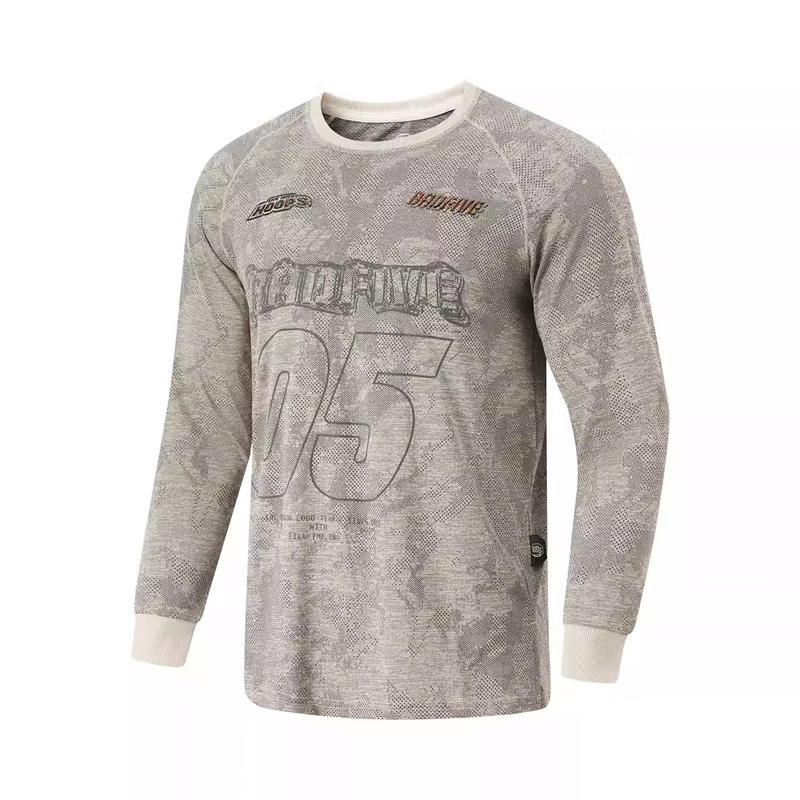 Li-Ning Мужская футболка с длинным рукавом с принтом букв по всей поверхности, с круглым вырезом, дышащая, универсальная, топы, рок-белый, серый ATLU077-2