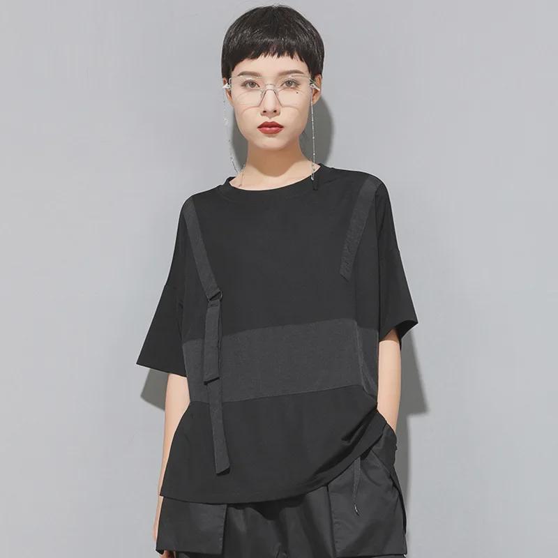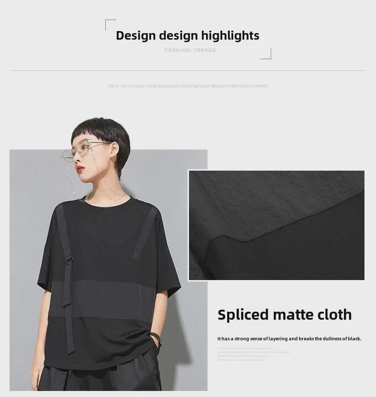 Футболка в стиле пэчворк для женщин в европейском и американском стиле, темного цвета, с круглым вырезом, свободным кроем, коротким рукавом, модный стиль