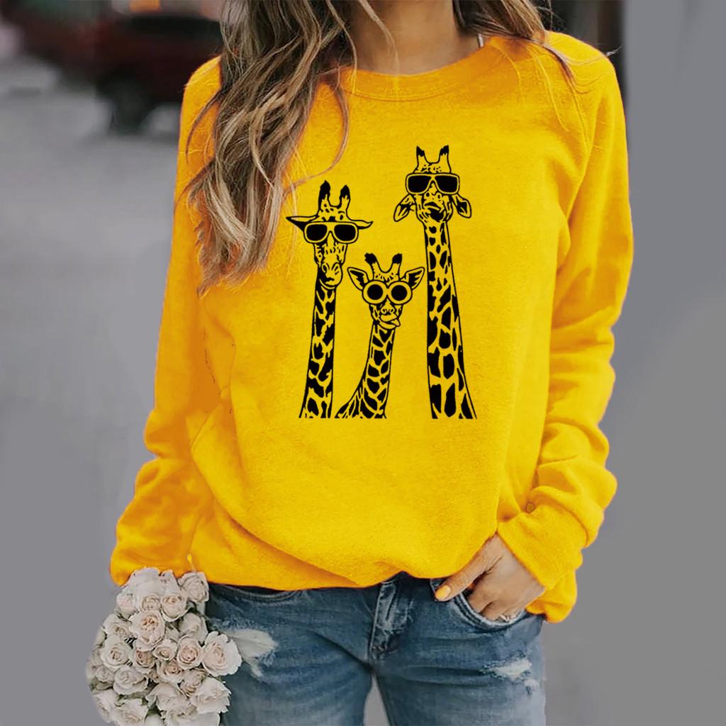 Подчеркните свой стиль с помощью этой модной женской толстовки с очаровательным принтом жирафа.. Разработанный для облегающего кроя, он легко сочетает в себе комфорт и моду.. Длинные рукава и круглый вырез горловины создают классический образ, который идеально подходит для любого повседневного выхода.. Изготовленная из мягкого, высококачественного модала, эта толстовка обеспечивает комфорт и воздухопроницаемость.. Идеально подходит для придания нотки веселья и элегантности вашему гардеробу.