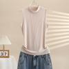Женский облегающий хлопковый жилет без рукавов с полувысоким воротником - Летний топ однотонной расцветки — купить товар онлайн с бесплатной доставкой по всему миру!