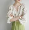 Винтажная рубашка JOJOZ из тенселя с абрикосовой цветочной вышивкой и рукавами-фонариками на завязках с зелеными листьями - Идеально для весны/лета. — купить товар онлайн с бесплатной доставкой по всему миру!