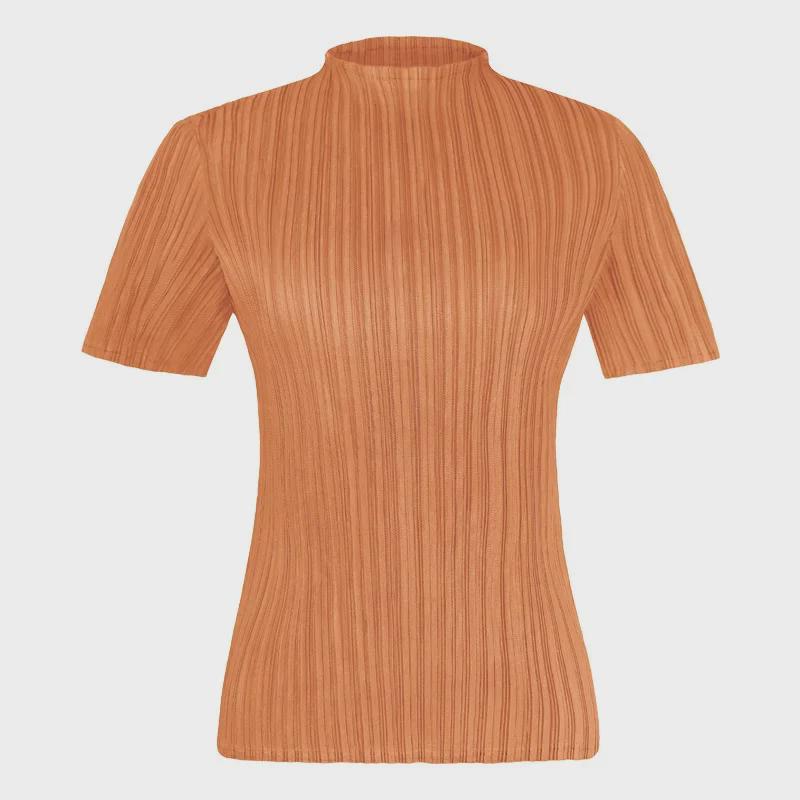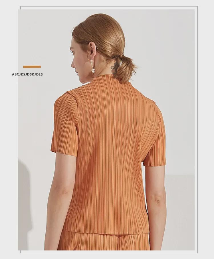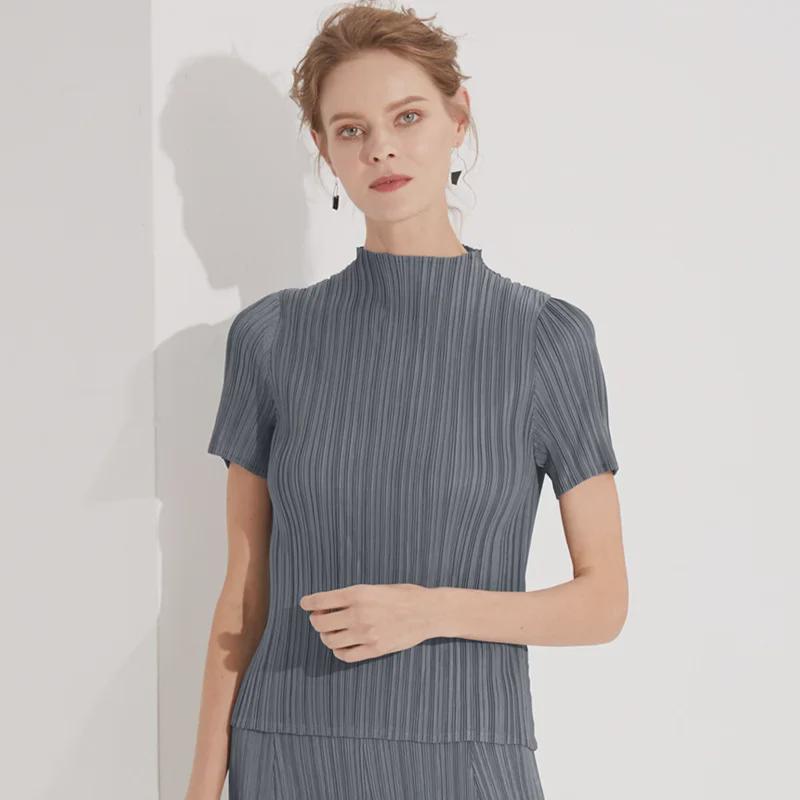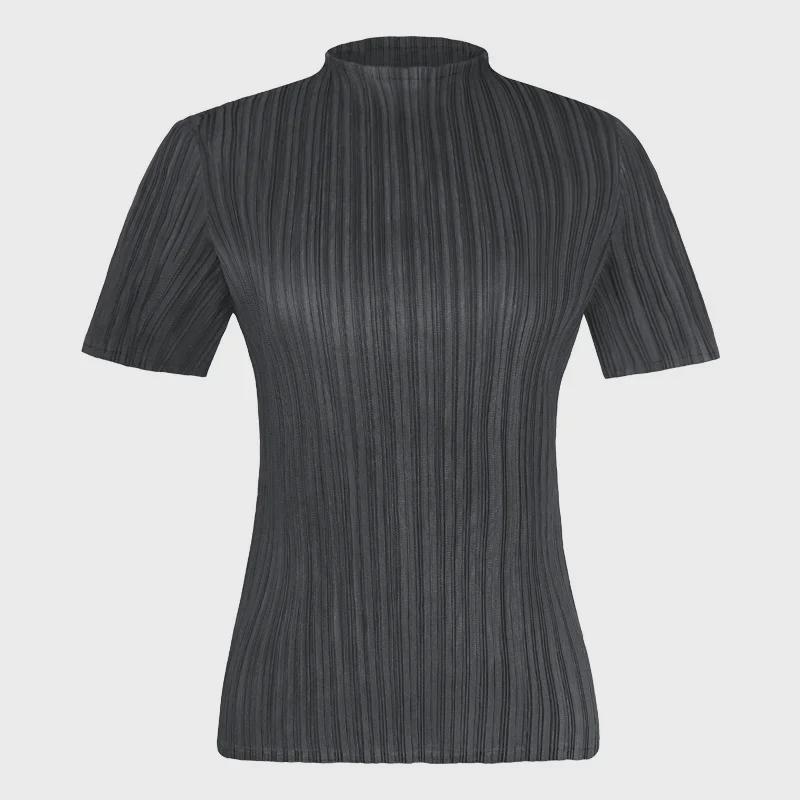 Плиссированная женская повседневная однотонная летняя футболка с коротким рукавом, удобная базовая коллекция 2025 года