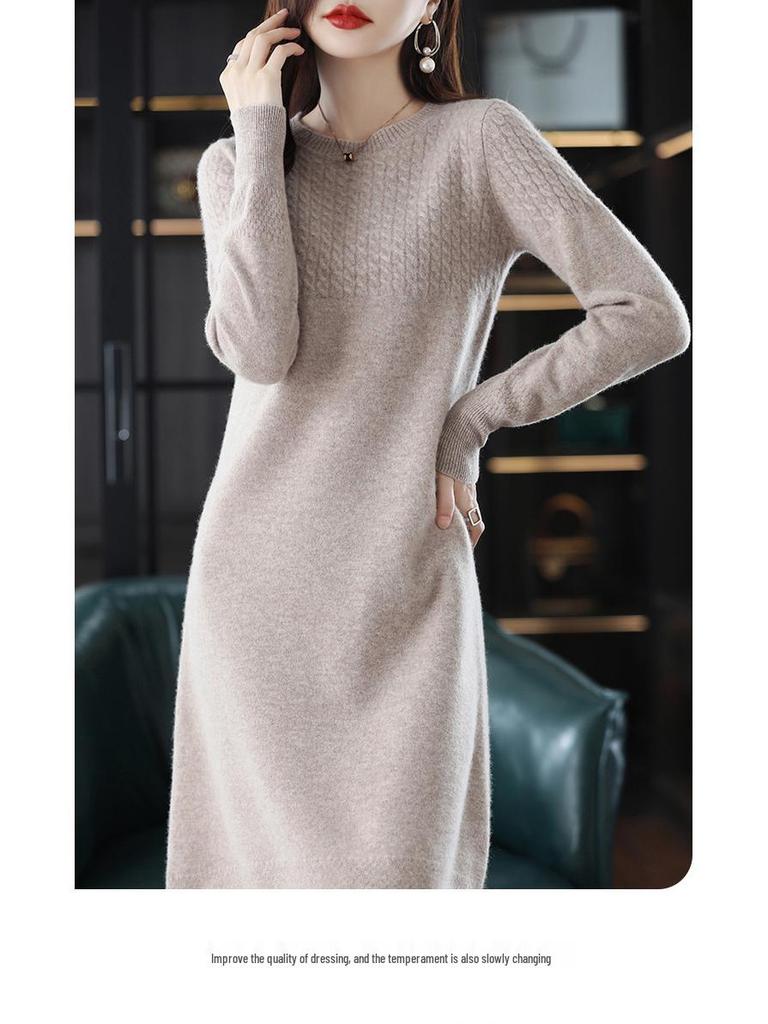 Окутайтесь уютной элегантностью этого женского винтажного платья-свитера из кашемира крупной вязки, созданного для максимального тепла и стиля в осенние и зимние месяцы.. Это платье средней длины, изготовленное из высококачественной шерсти, обеспечивает плотную, удобную посадку и мягкое прикосновение к коже.. Его свободный крой создает расслабленный силуэт, идеально подходящий для многослойности или ношения отдельно.. Круглый вырез горловины и длинные рукава подчеркивают его винтажный шарм, делая его универсальной вещью для любого гардероба.. Доступное в больших размерах, это платье-свитер — идеальный выбор для тех, кто ищет и комфорт, и вневременную моду.