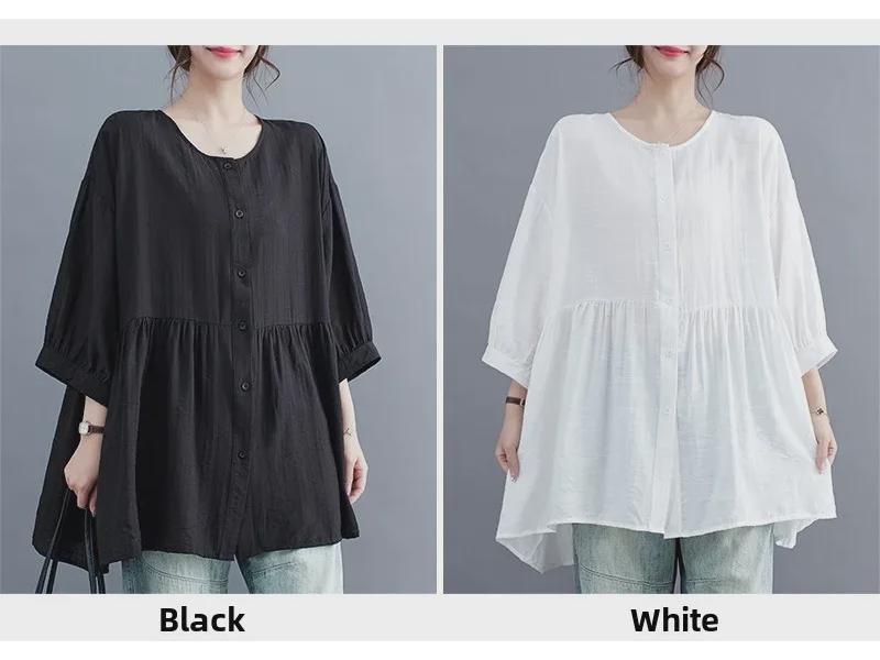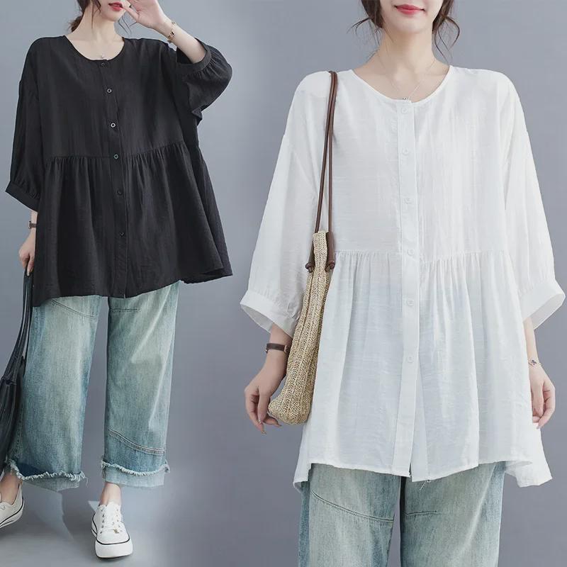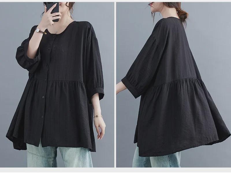 Лето 2025 Женская рубашка больших размеров в корейском стиле, приталенная, с рукавом семь восьмых