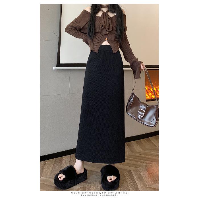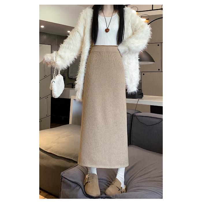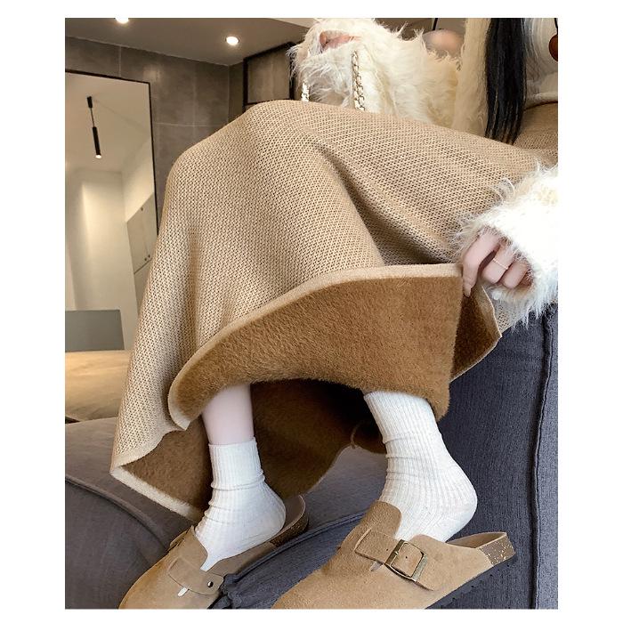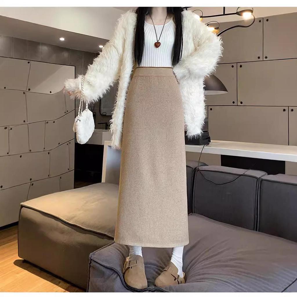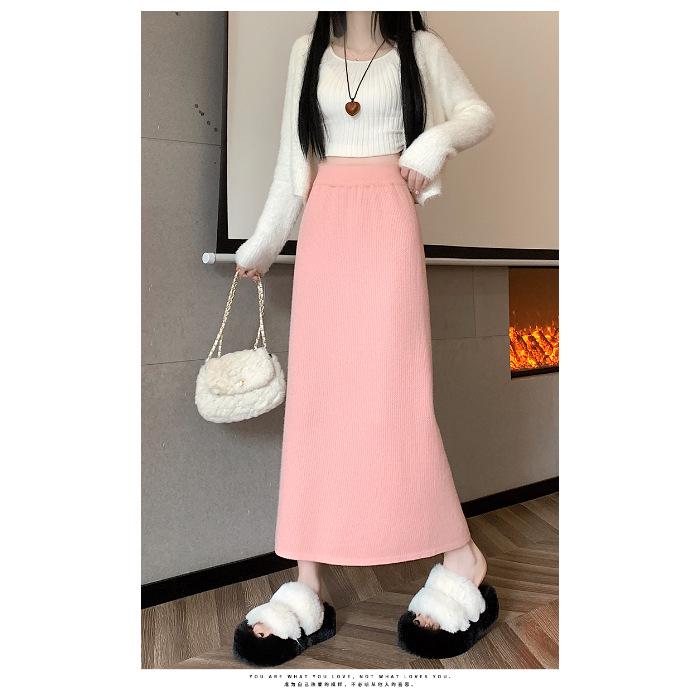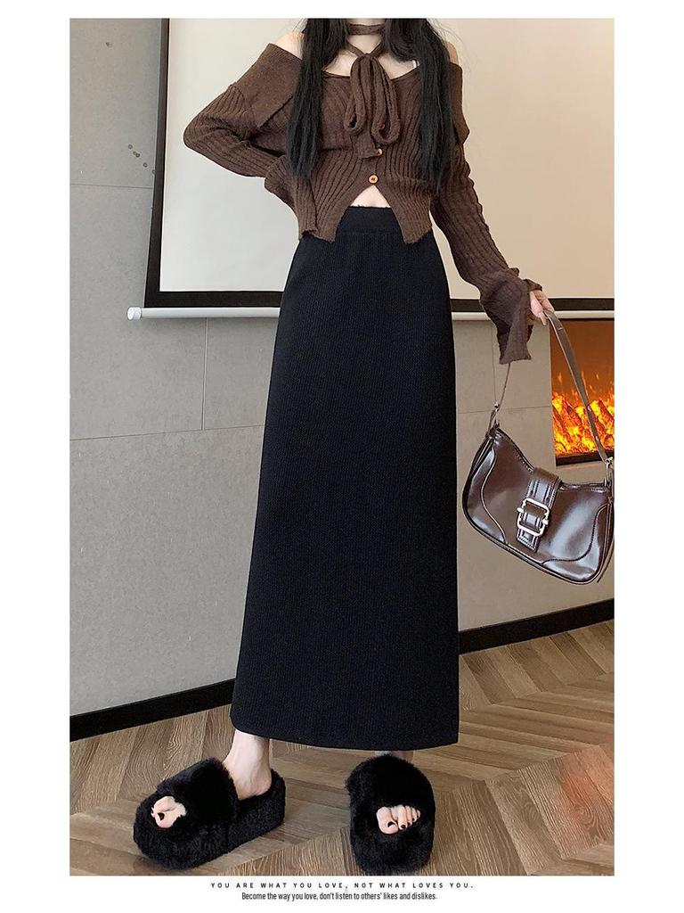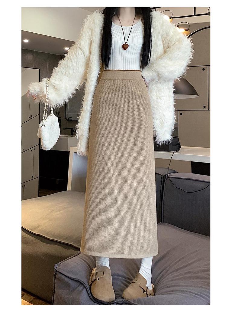 Вязаная миди-юбка для миниатюрных женщин на флисовой подкладке - Утепленная, прямого кроя, А-силуэта, с разрезом, облегающего фасона для осени/зимы