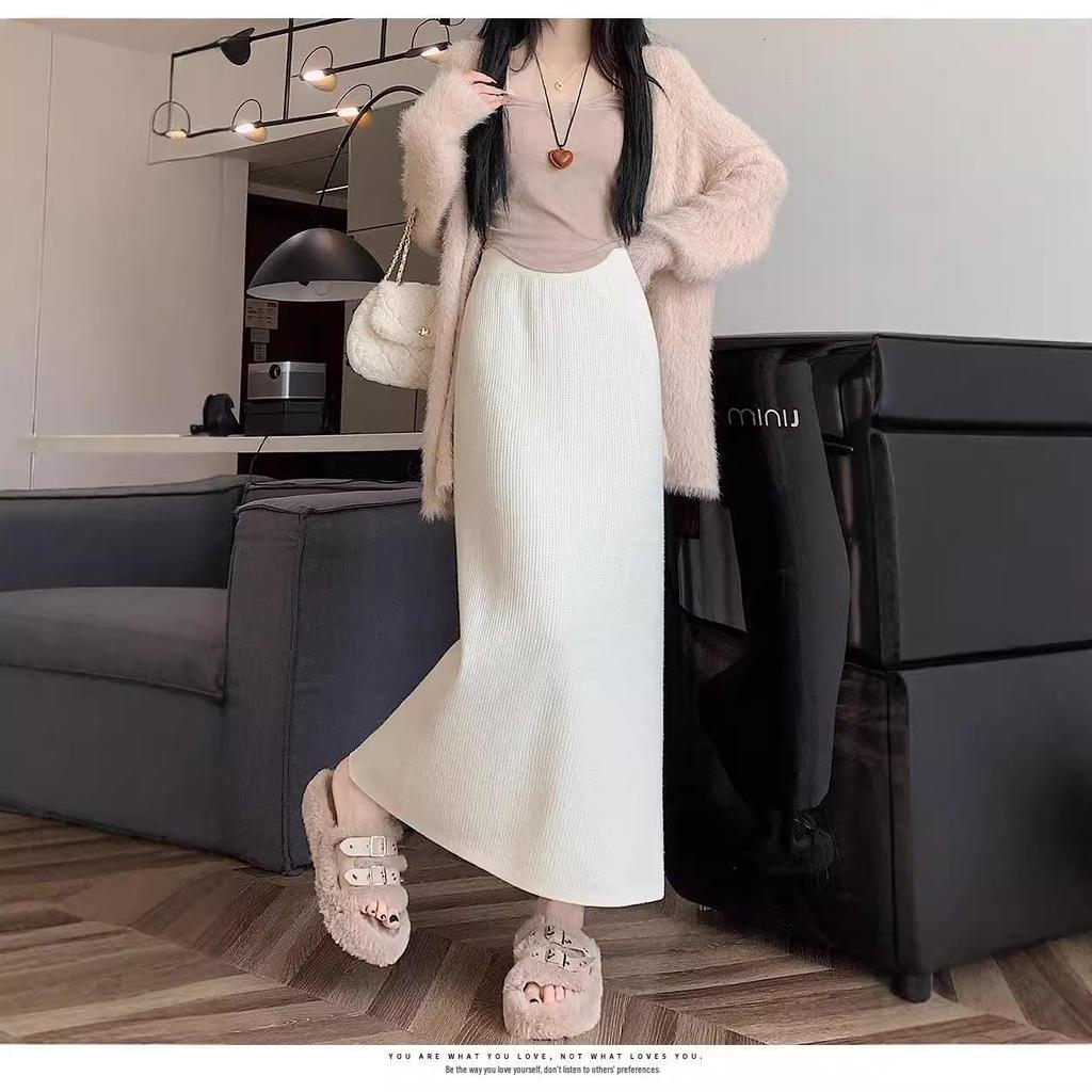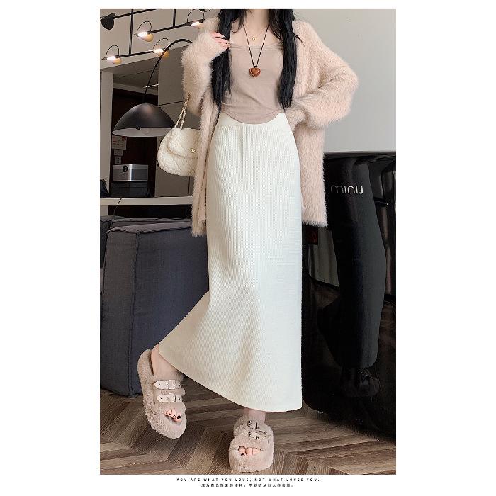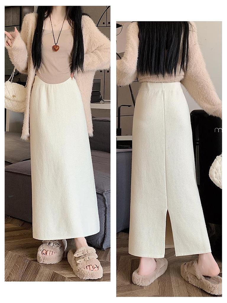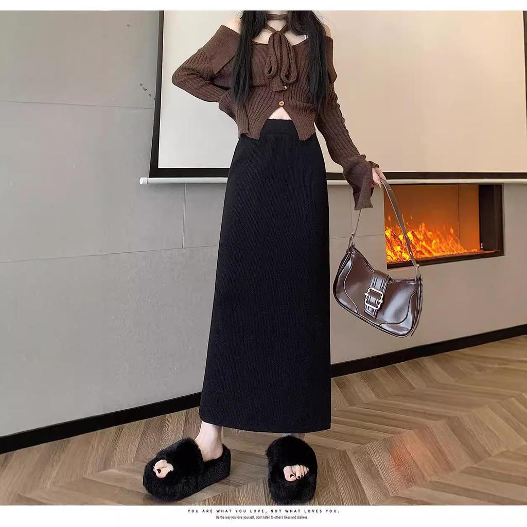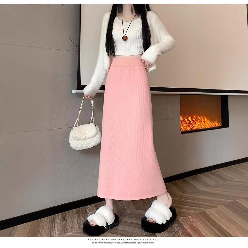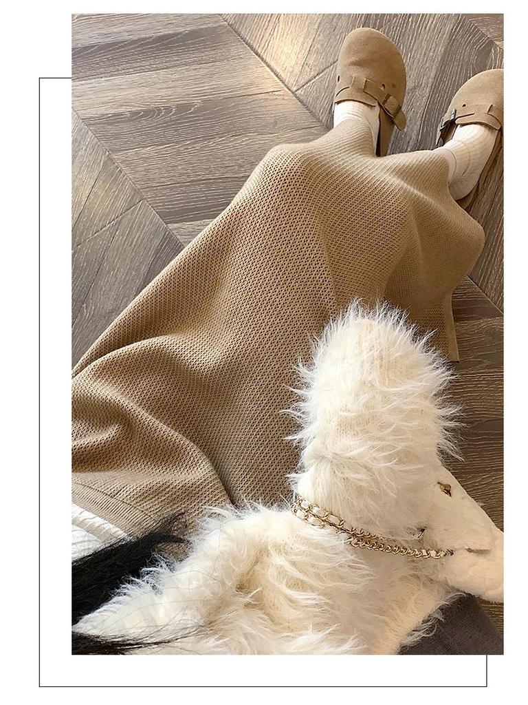 Вязаная миди-юбка для миниатюрных женщин на флисовой подкладке - Утепленная, прямого кроя, А-силуэта, с разрезом, облегающего фасона для осени/зимы