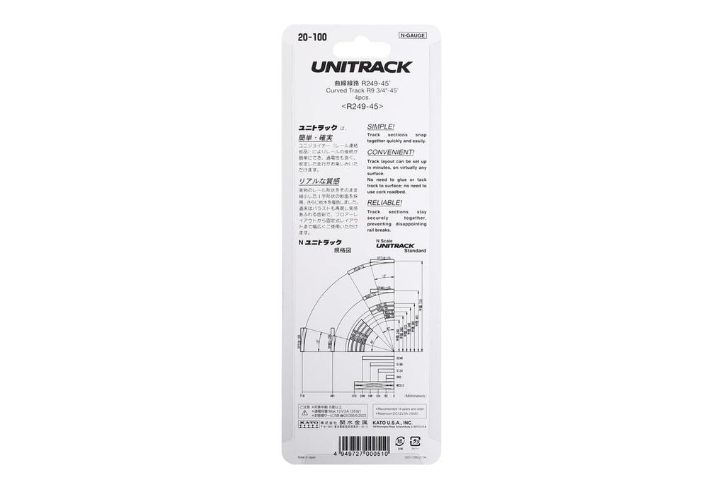 KATO N gauge изогнутый путь 4 штуки Принадлежности для железнодорожной модели R249-45° 20-100
