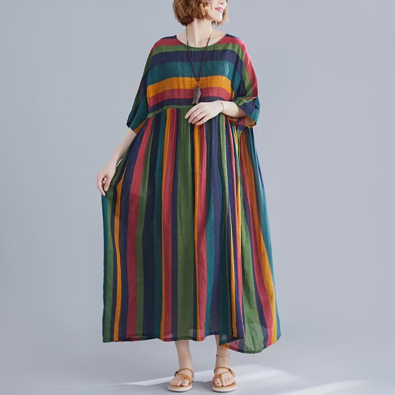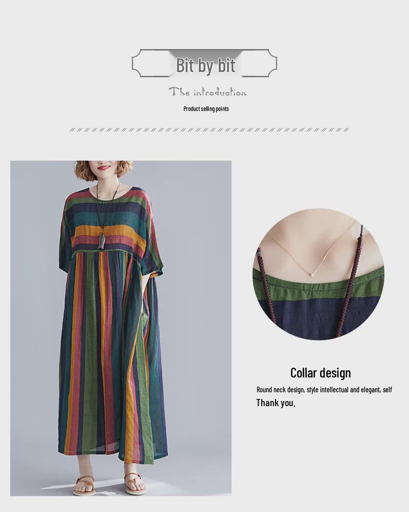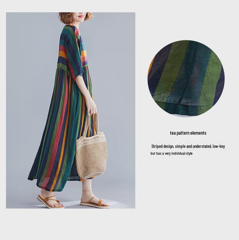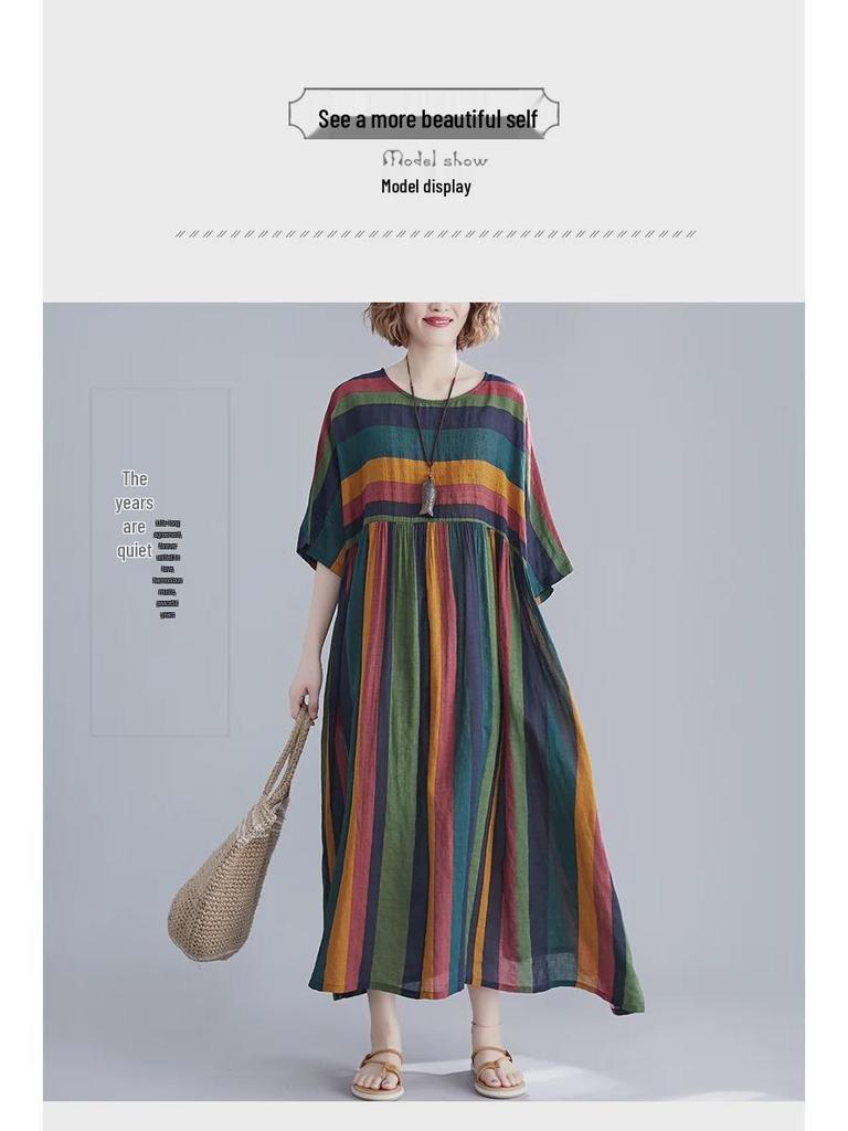 Летнее платье 2023 года больших размеров в полоску с коротким рукавом
