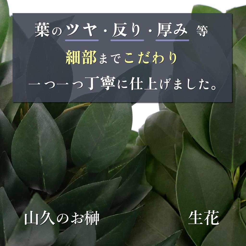 Каждый сакаки изготавливается вручную в Японии (Ямакю, город Кавагоэ, префектура Сайтама) проверяя полноту листьев. Стебли закреплены флористической лентой, что облегчает их использование и снижает вероятность зацепиться за вазу.. Мы добавили цилиндрическую губку для фиксации сакаки на месте, чтобы он красиво смотрелся в вазе, поэтому его можно использовать даже с большими подставками для сакаки.