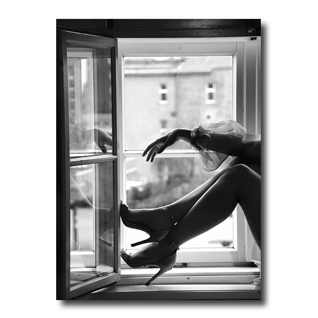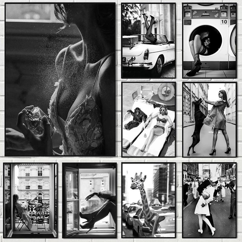 Винтажная мода Настенное искусство Постер Принт Черно-белая Картина на холсте Домашний декор Женские картины Гостиная Cuadros
