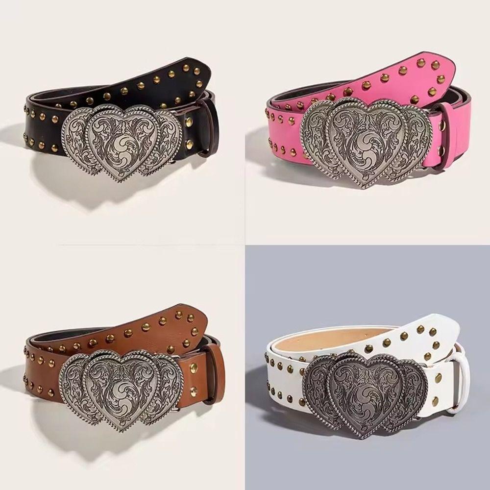 Сердце Однотонные Готические Панк Ремень с Заклепками Y2k Поясные Ремни Для Мужчин Женщин