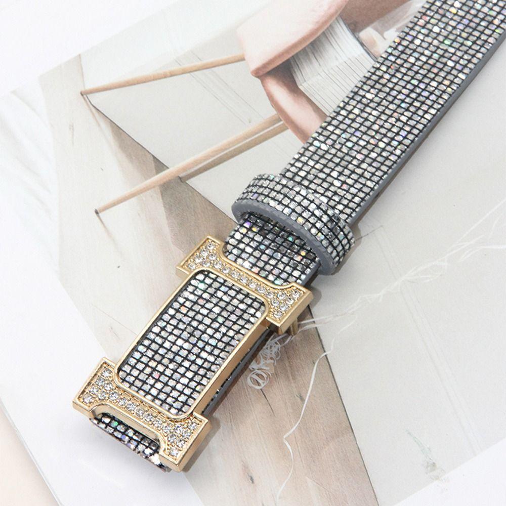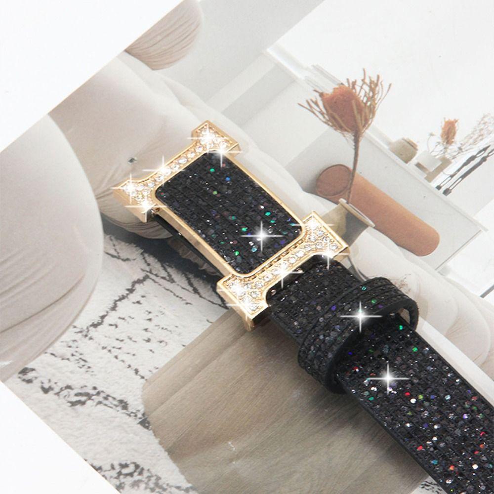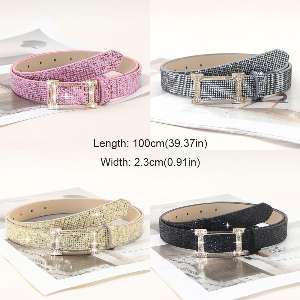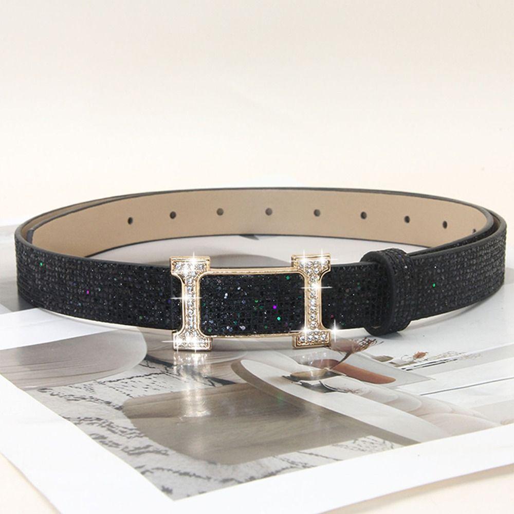 Блестящий ремень из ПУ кожи Блинг-блинг ремень с пряжкой-слайдером Винтажный трендовый пояс Женский