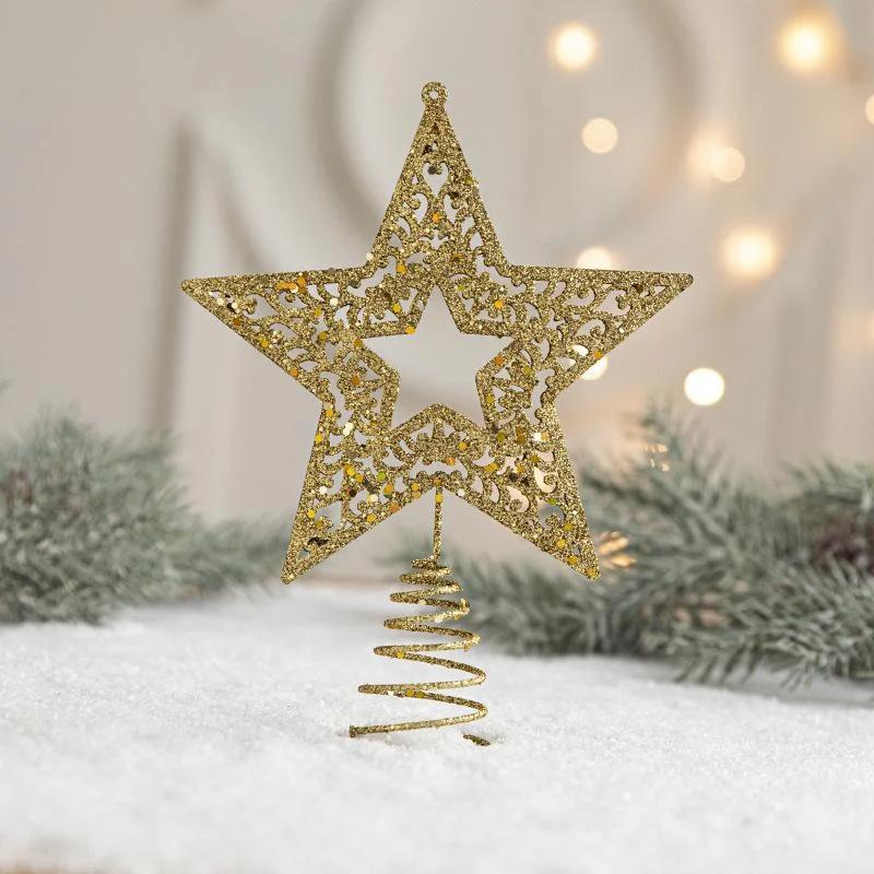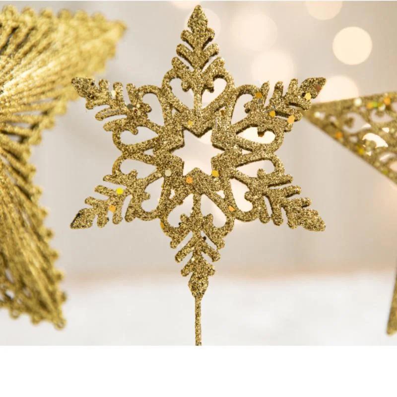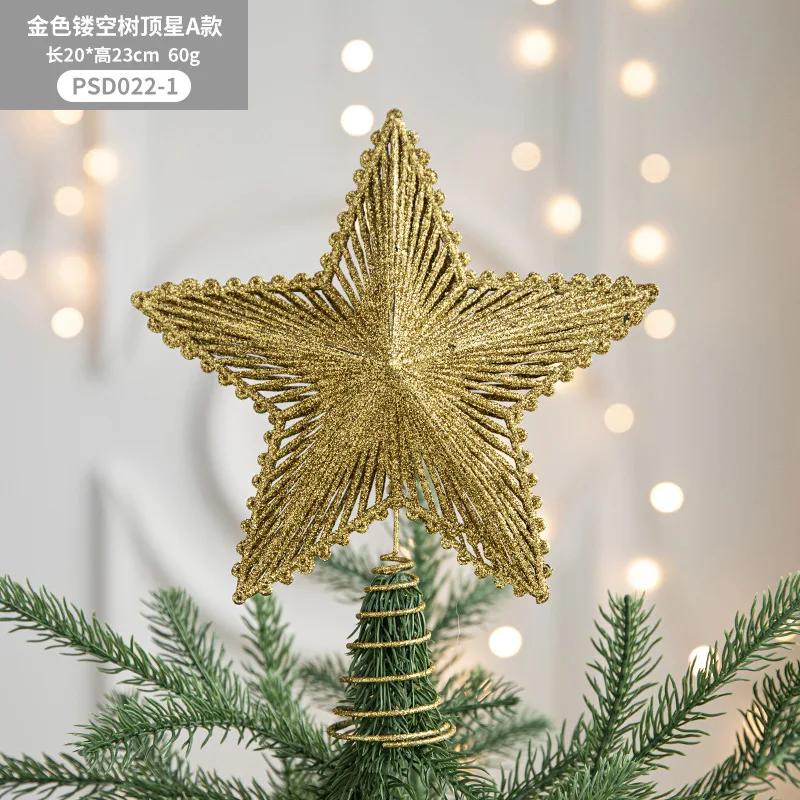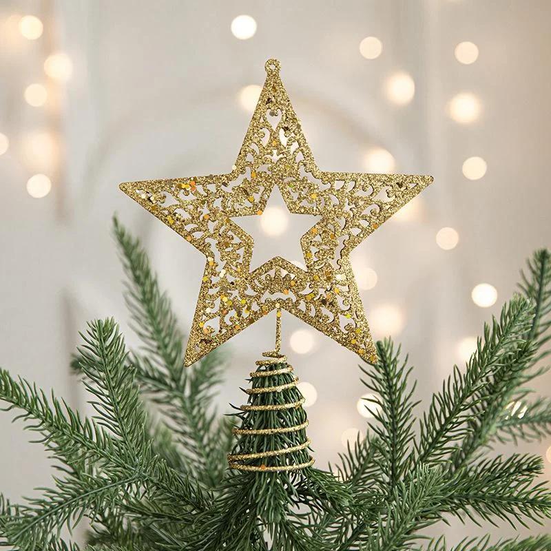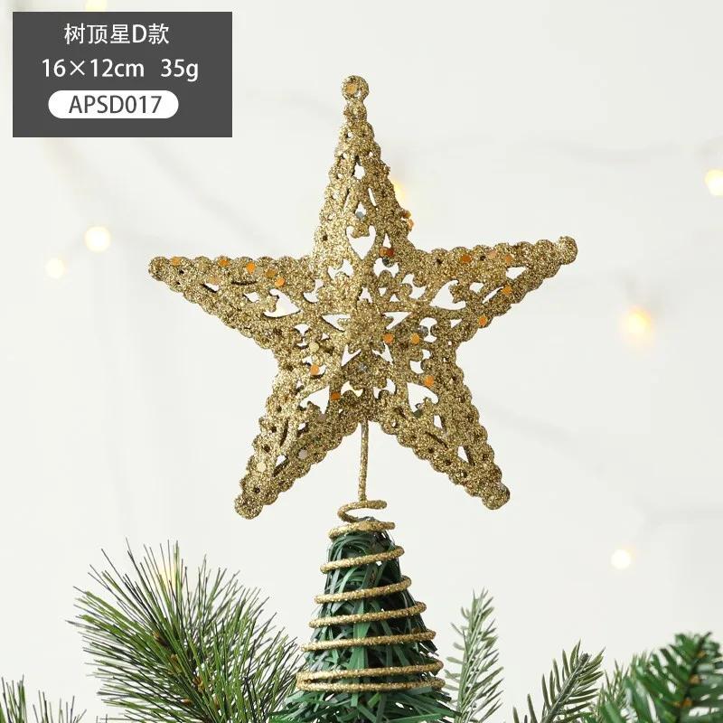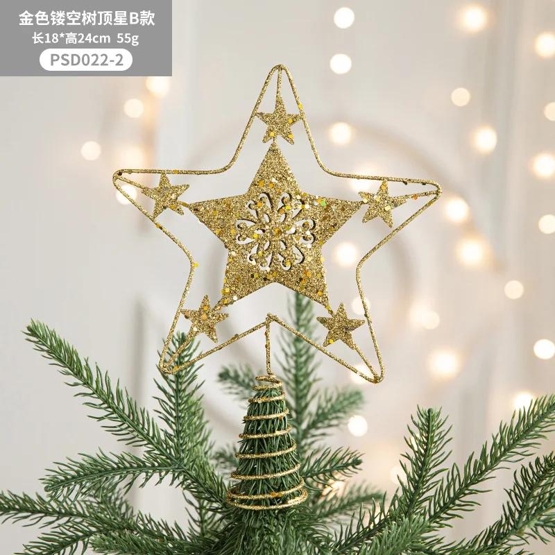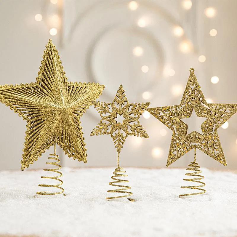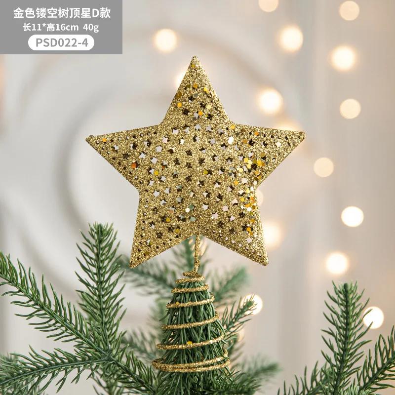 Золотая блестящая рождественская елка, верхушка из железной звезды, рождественские украшения для дома, рождественские елочные украшения, Новый год 2023