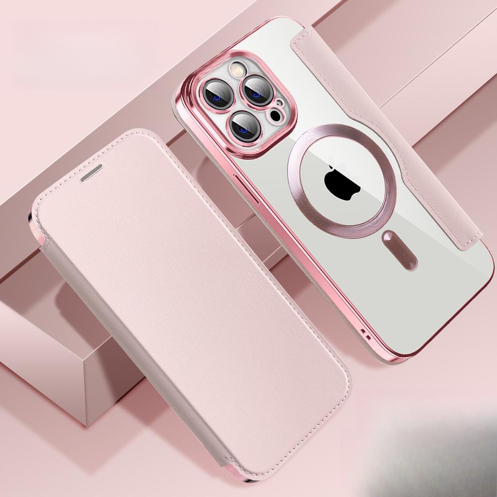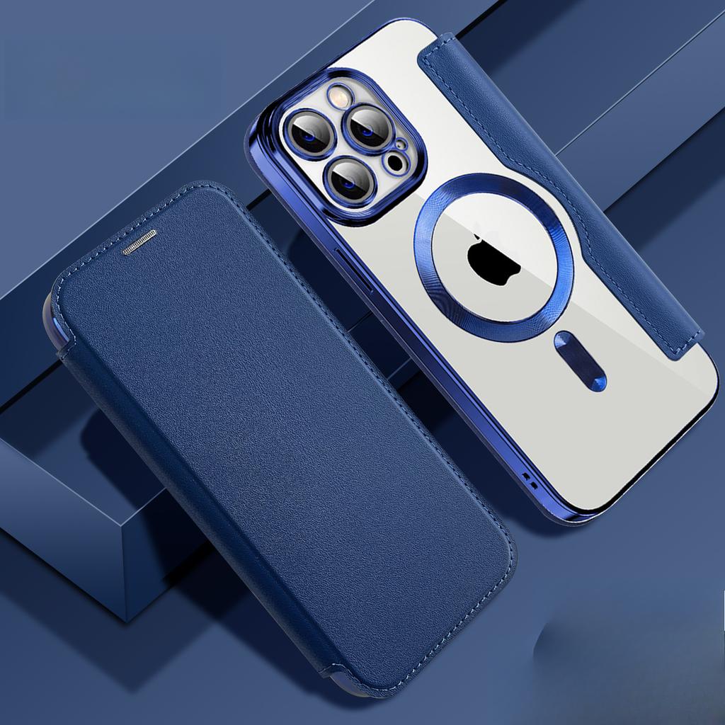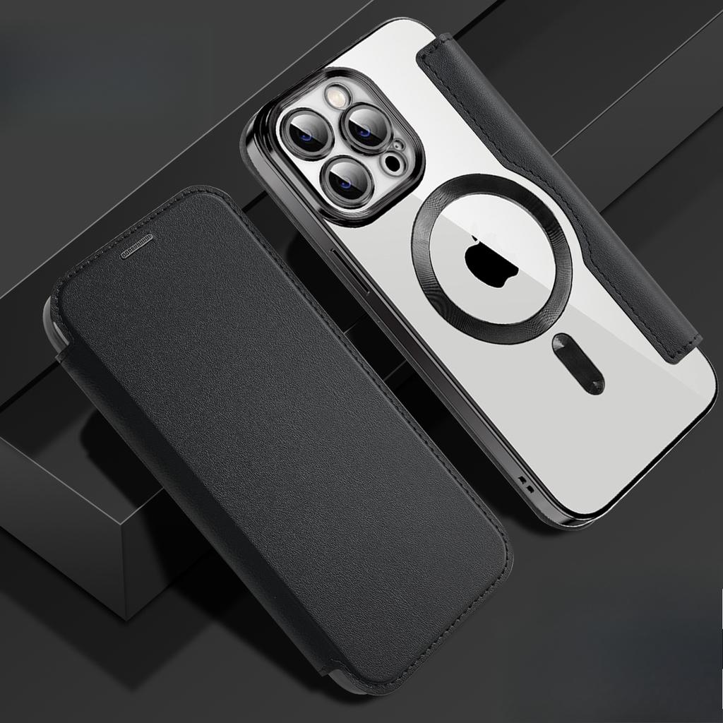 Кожаный чехол-книжка, подходящий для чехла для телефона Apple 14promax, гальваническое покрытие, прозрачный Iphone13 12 магнитный 11 защитный чехол