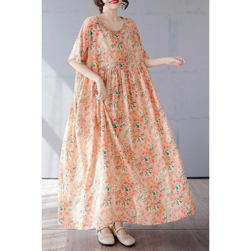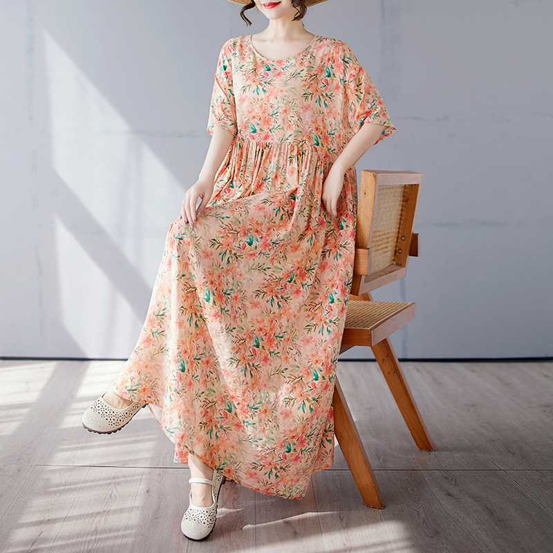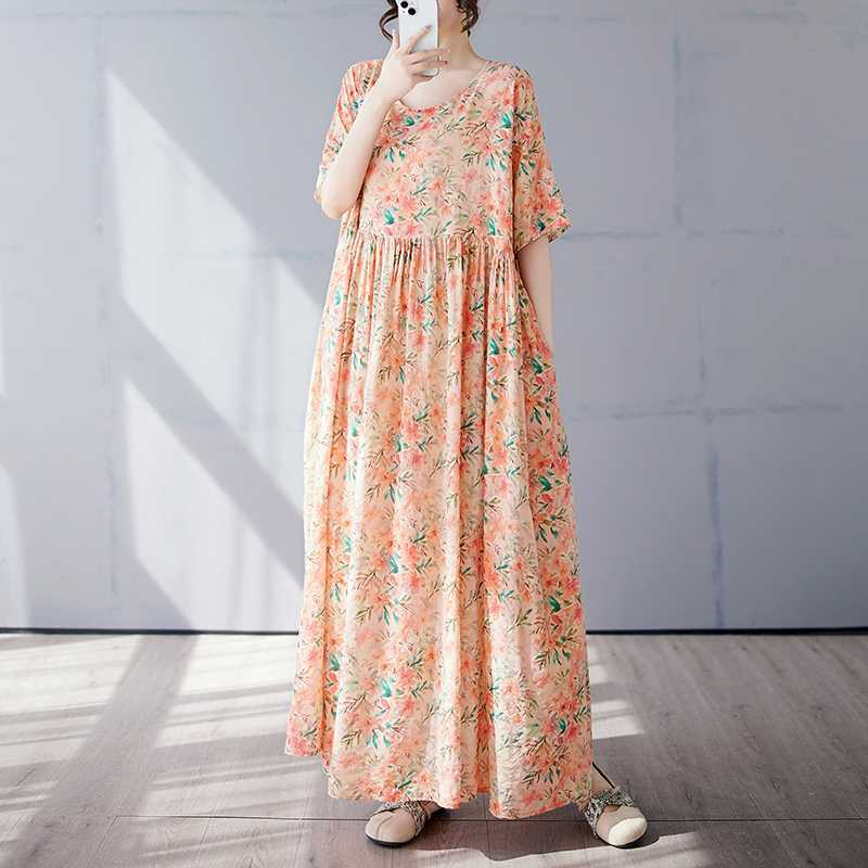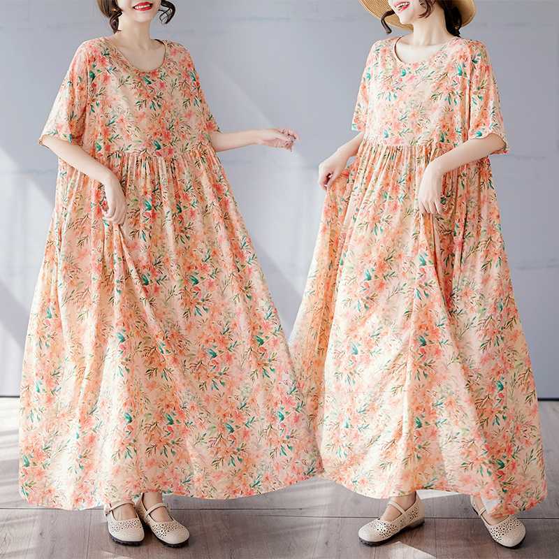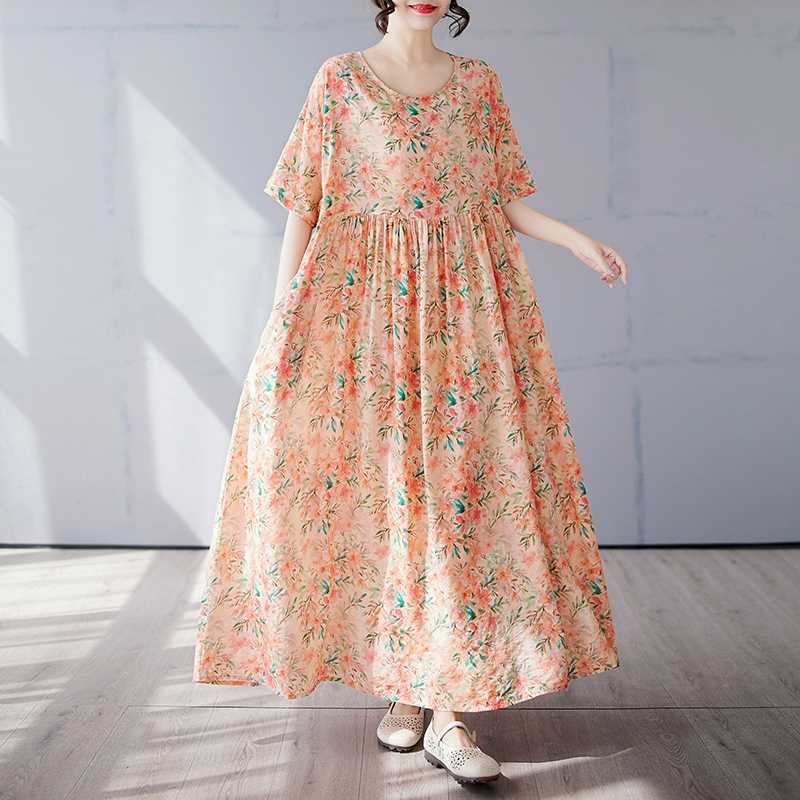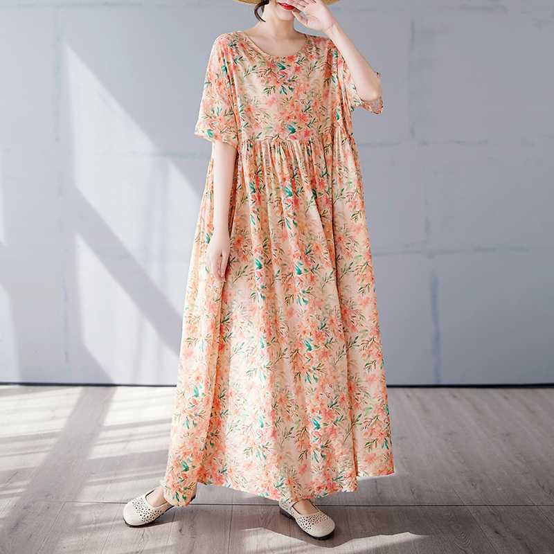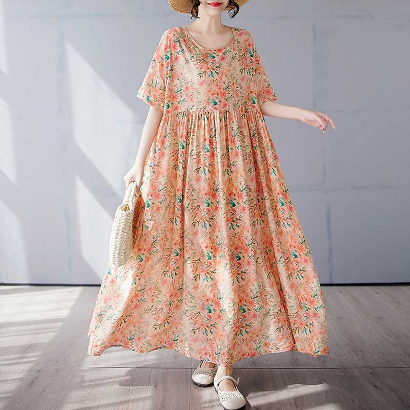 Простая и модная длинная юбка, летнее платье с короткими рукавами и круглым вырезом с принтом