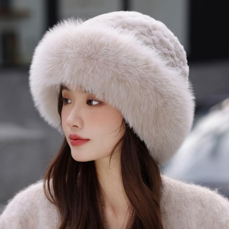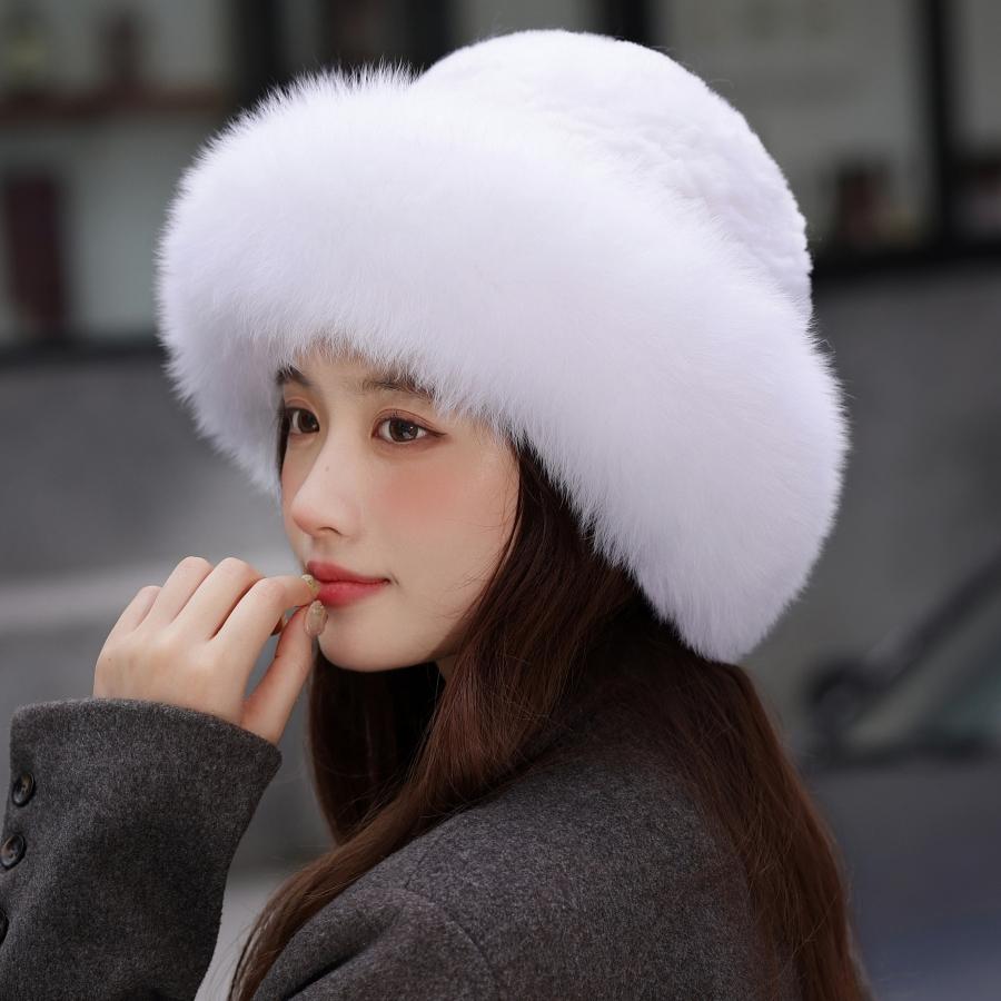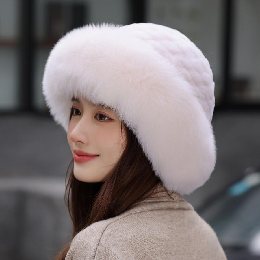 Панама из кроличьего пуха, вязаная, эластичный головной убор, теплая женская осенне-зимняя шапка из лисьего меха