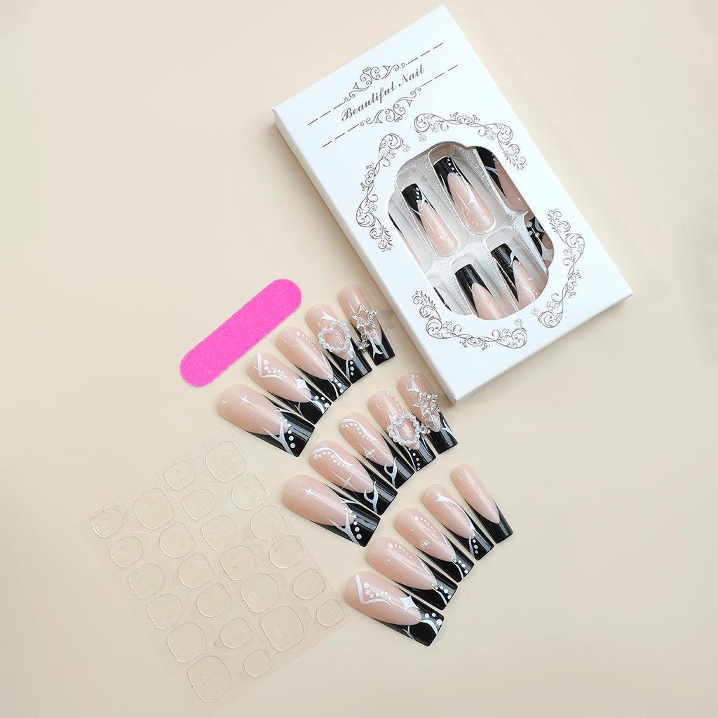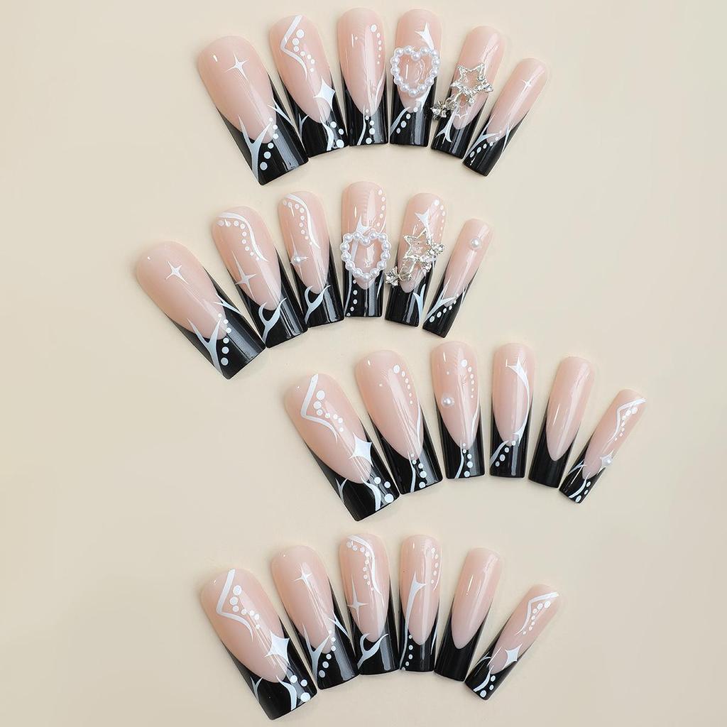 Европейские и американские очень длинные 3D звезды и сердца, накладные ногти во французском стиле