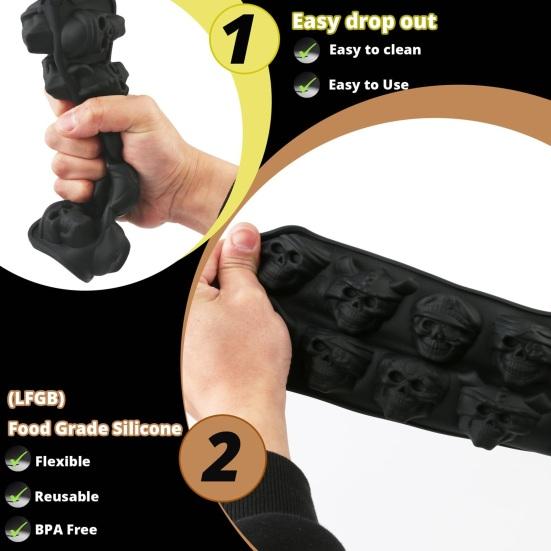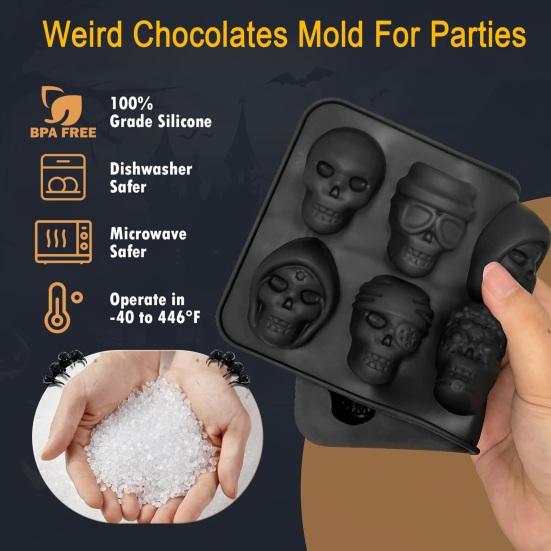 2 шт. Форма для льда 10 ячеек Форма черепа Жуткие закуски Хэллоуин Мероприятия Формы Пищевой силикон Легкое извлечение Форма для выпечки