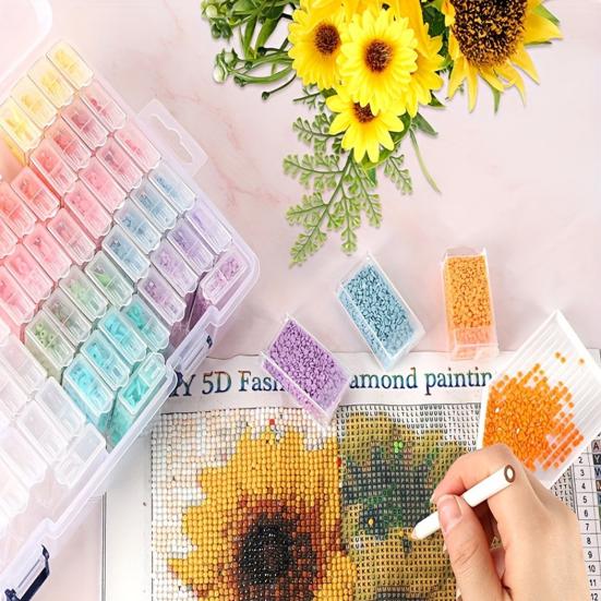 Универсальное решение для хранения всех необходимых материалов для искусства страз, включая сверла, бусины, искусственные драгоценные камни и мелкие материалы для рукоделия, поддерживающее ваше рабочее место в порядке и вдохновляющее на творчество.