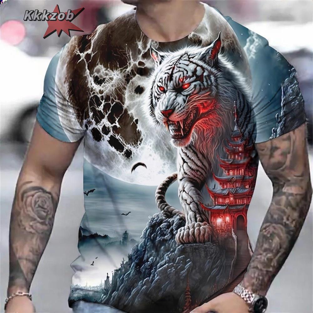 Мужские футболки Футболка с принтом свирепого тигра 3D Животное Летняя с коротким рукавом Мужские футболки оверсайз Повседневные топы Футболки Мужская одежда