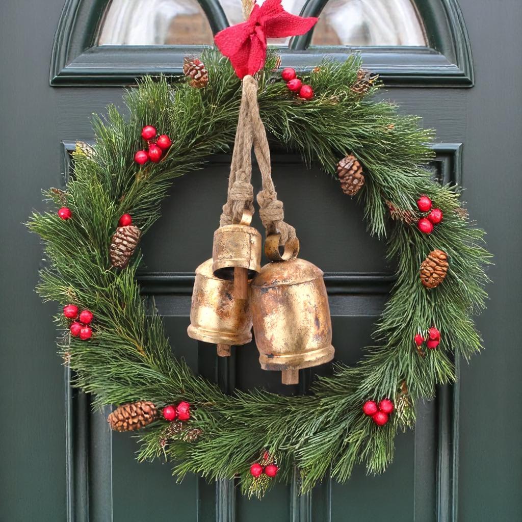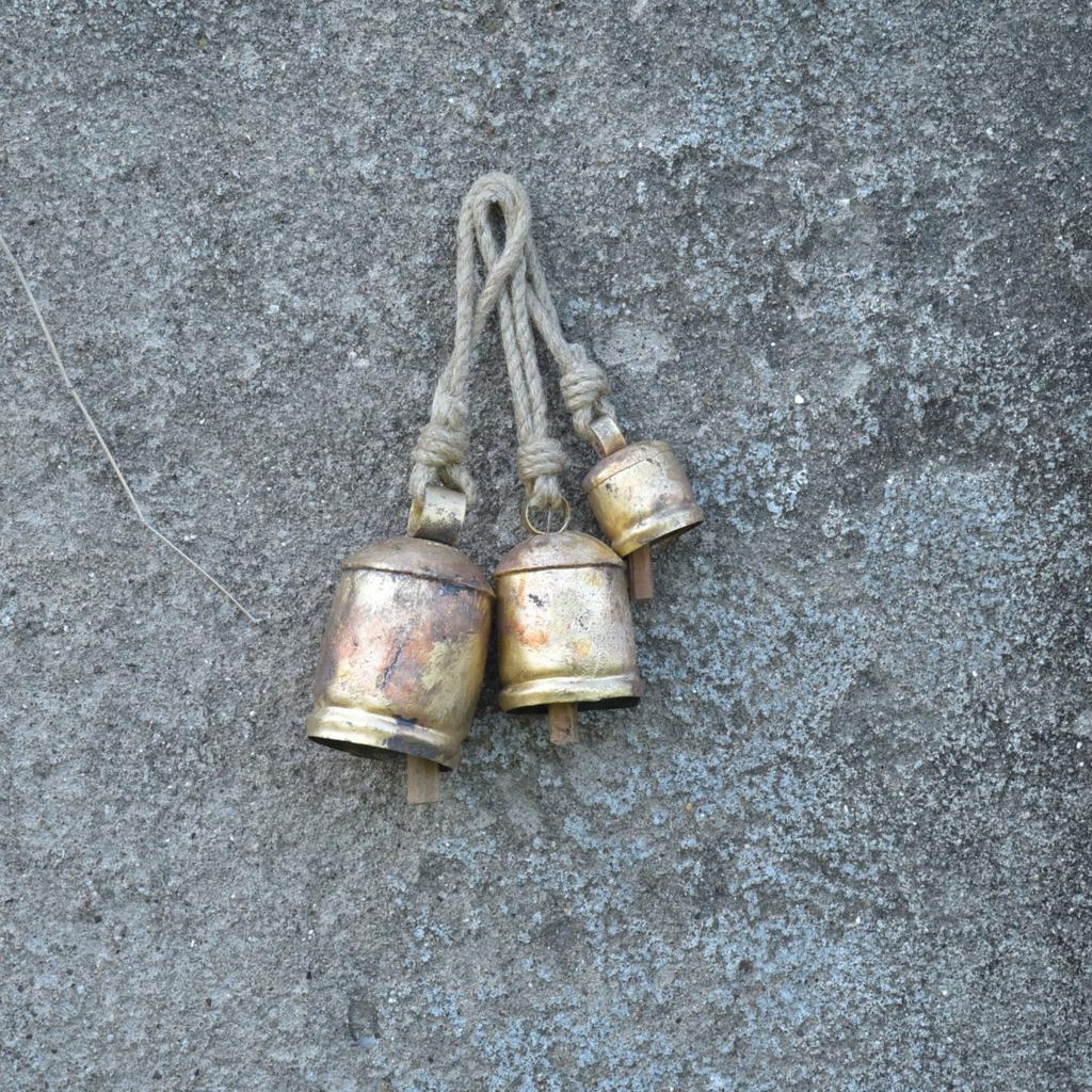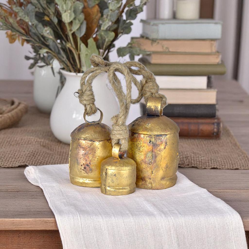 Набор из 3 деревенских металлических коровьих колокольчиков с джутовой веревкой – Винтажные золотые подвесные украшения для поделок, двери, венка, рождественского декора, для дома и улицы