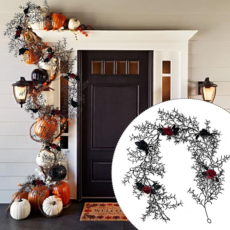 Хэллоуин Имитация Розы Украшение Имитация Лозы Вечеринка Пластиковое Украшение Шелковый Цветок Декоративные Подвески Дом Сад 180см