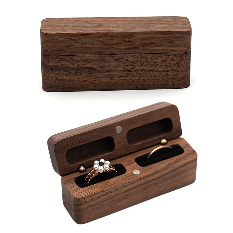 1 шт. Деревянный держатель для колец и серег с двумя прорезями из грецкого ореха для упаковки на случай предложения руки и сердца, романтичная шкатулка для колец с мягкой подкладкой, подарочный дисплей