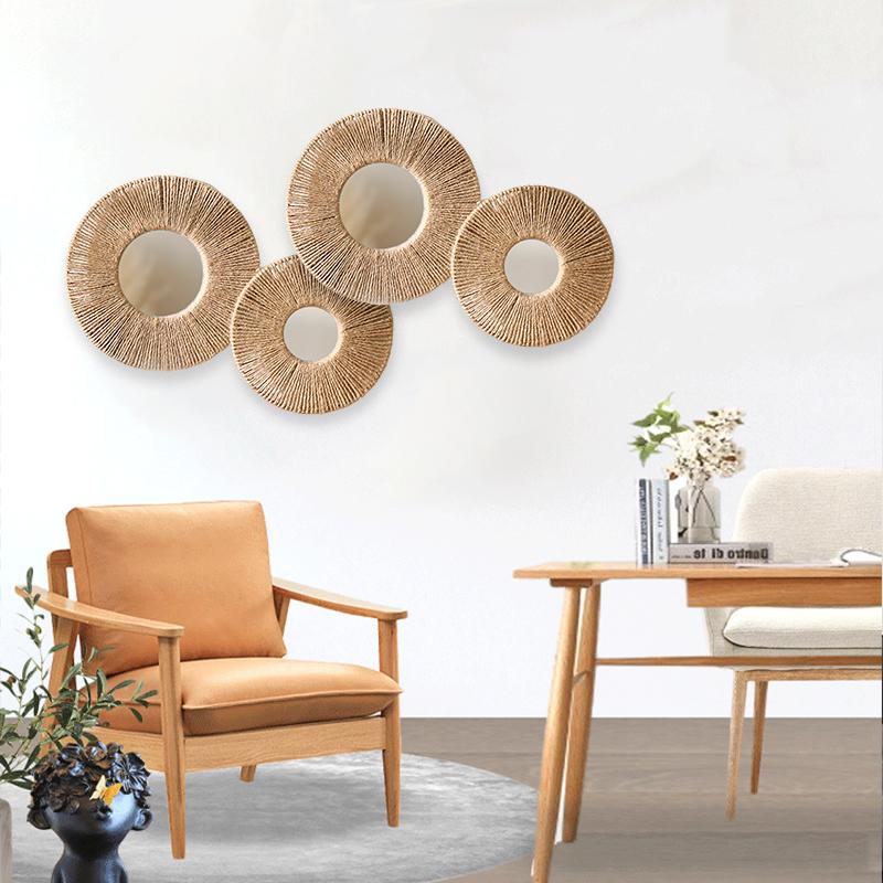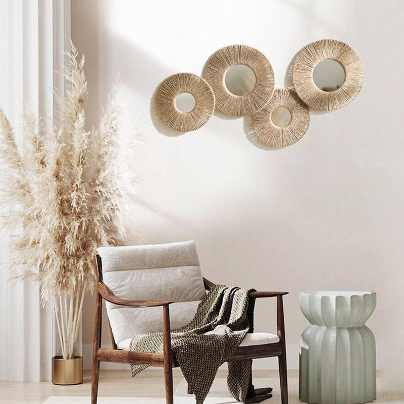 1 шт. Круглое настенное зеркало из натурального волокна, винтажное настенное зеркало из плетеной вручную джутовой веревки 30/15 см