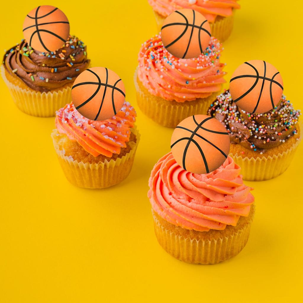 20 шт. Топперы для торта в виде баскетбола, Украшения, Мини-украшения для кексов, Для баскетбольной вечеринки, Вечеринки по случаю дня рождения, Спортивные принадлежности для вечеринки