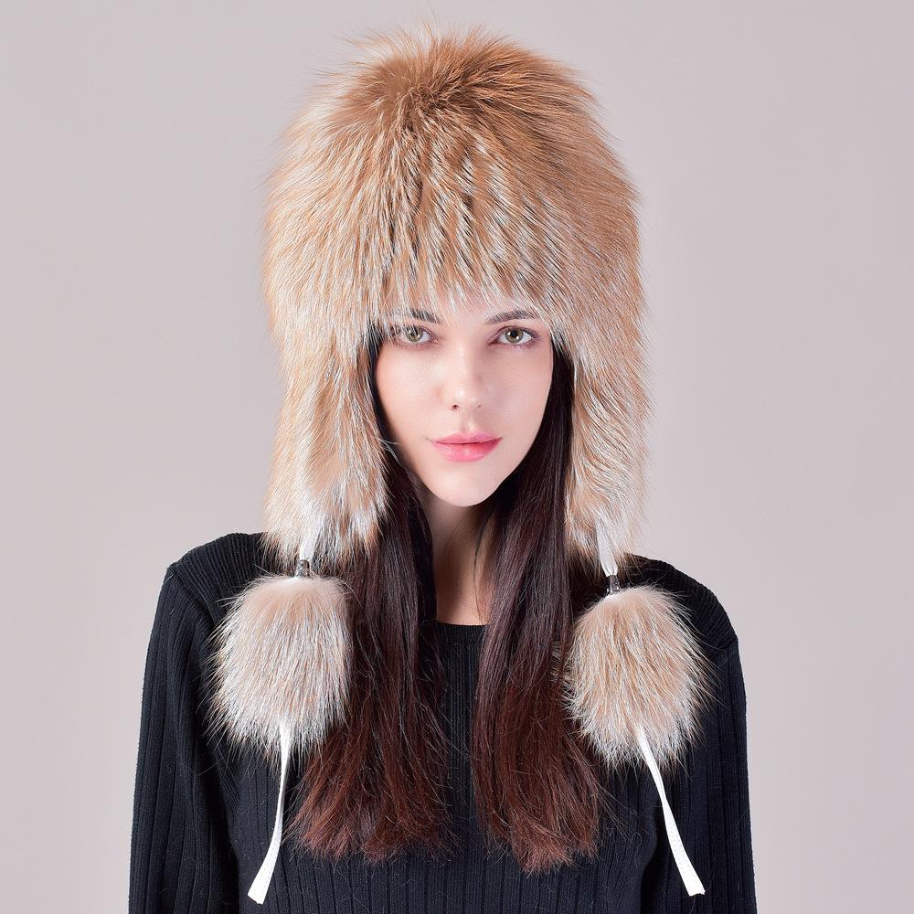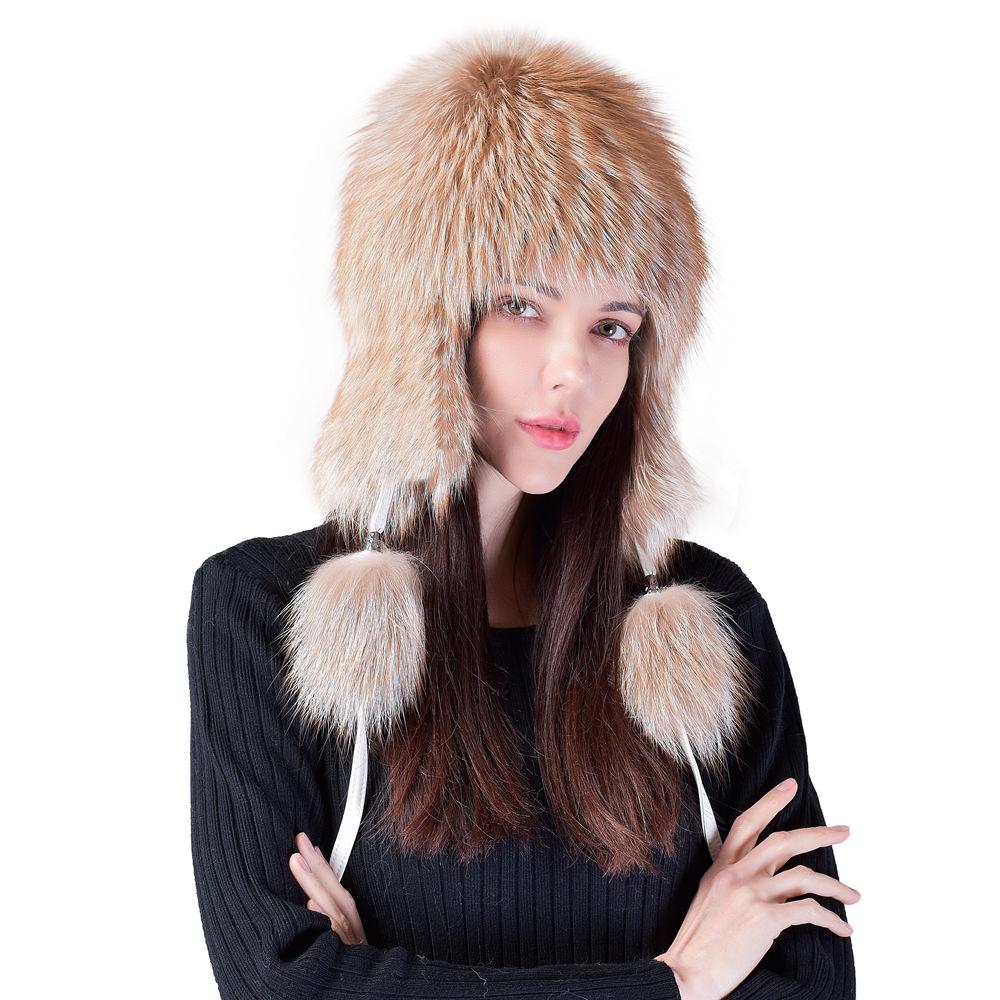 Шапка из лисьего меха женская зимняя корейская версия теплая защита ушей меховая шапка Bere снежная шапка лыжный мешок головной убор тонкая