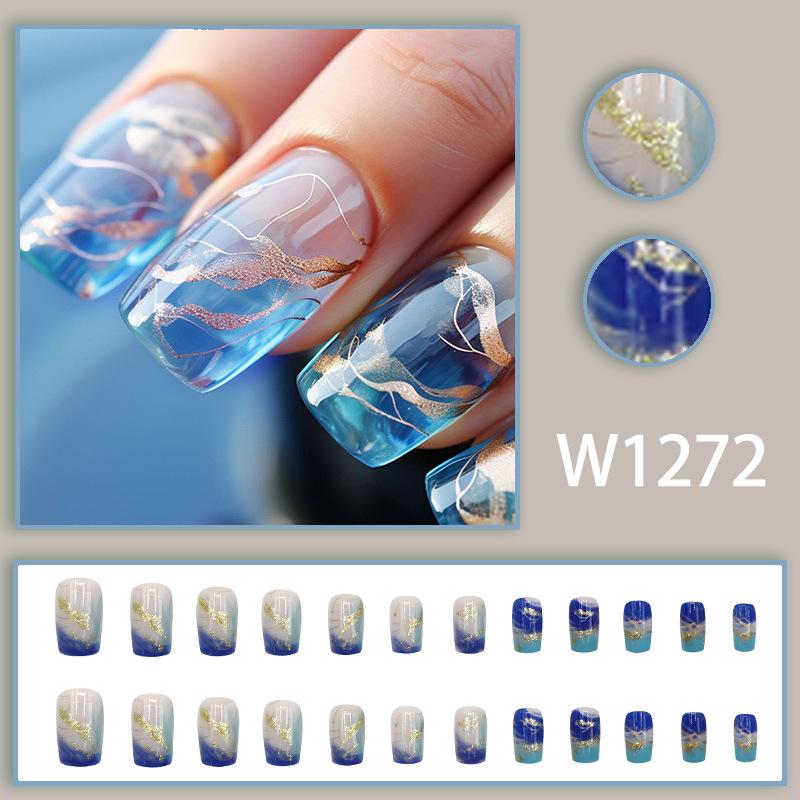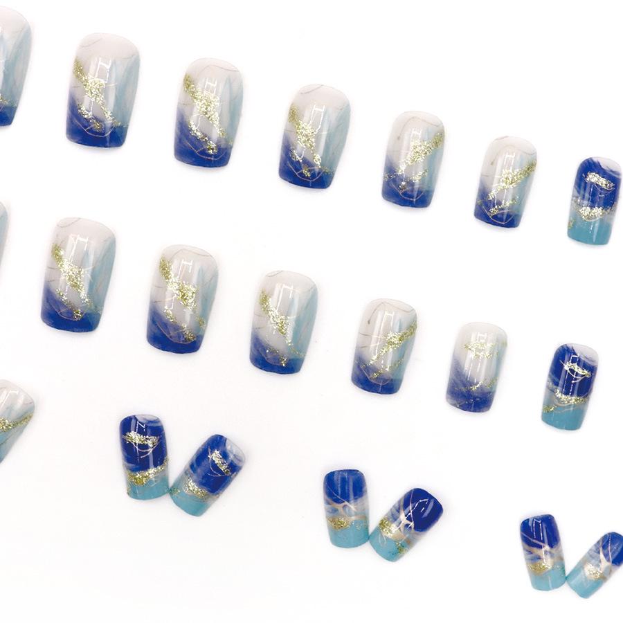 Европейский и американский омбре градиент ледяной голубой золотая фольга нейл-арт