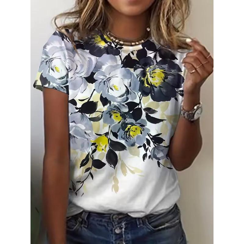Женская летняя футболка с круглым вырезом, 3D, с коротким рукавом, в стиле ретро, с цветочным принтом