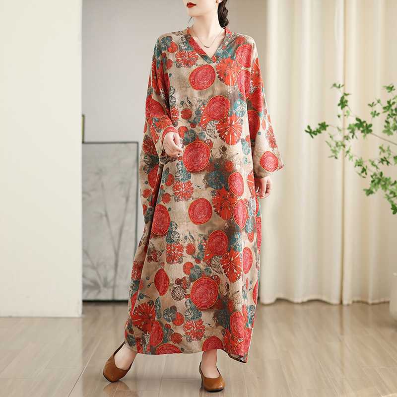 Красочное дорожное платье с V-образным вырезом в стиле ретро, длинная юбка, хлопок-лен