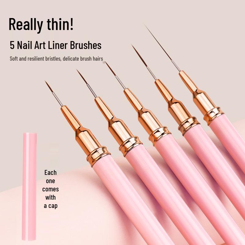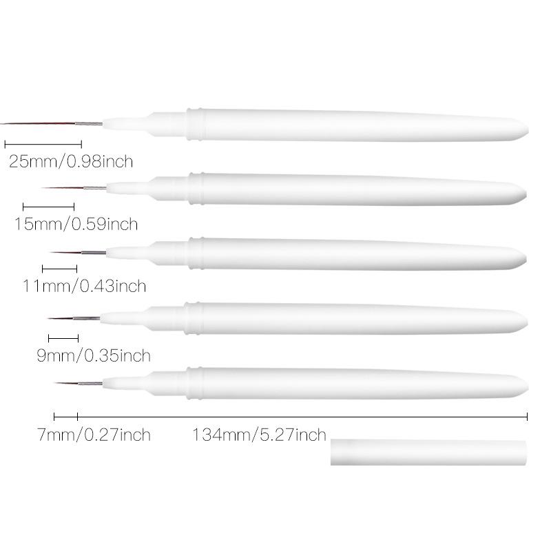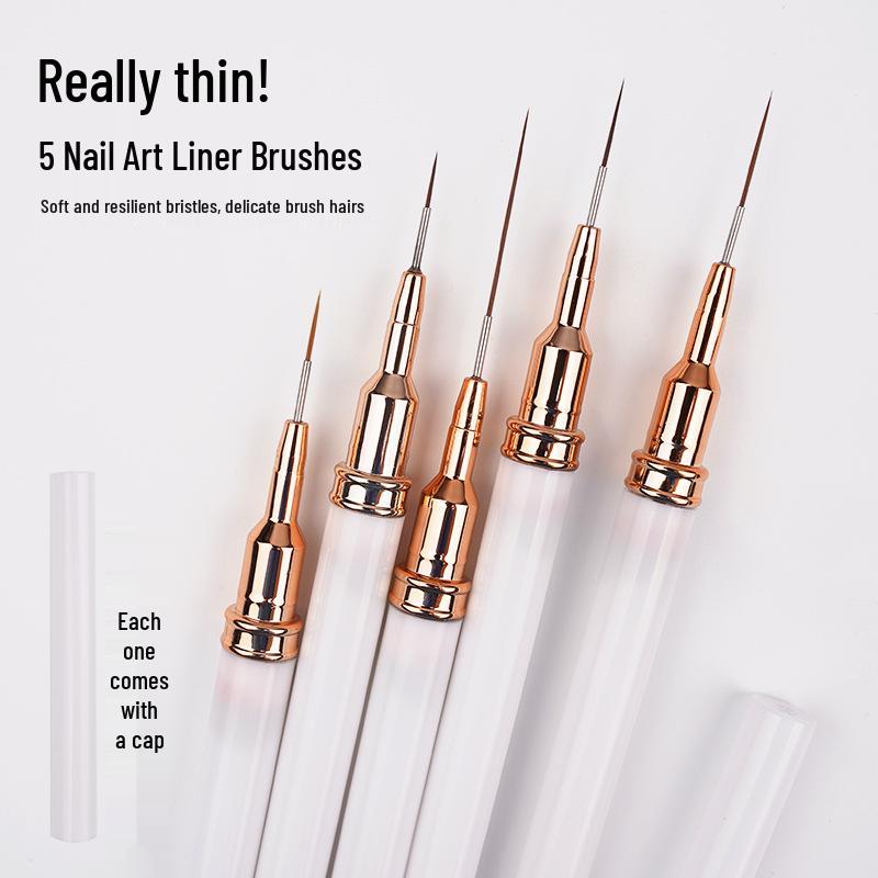 Набор кистей для нейл-арта из 5 штук, японские ультратонкие лайнеры для гелевых ногтей - Идеально подходят для рисования, прорисовки и контурирования цветов.